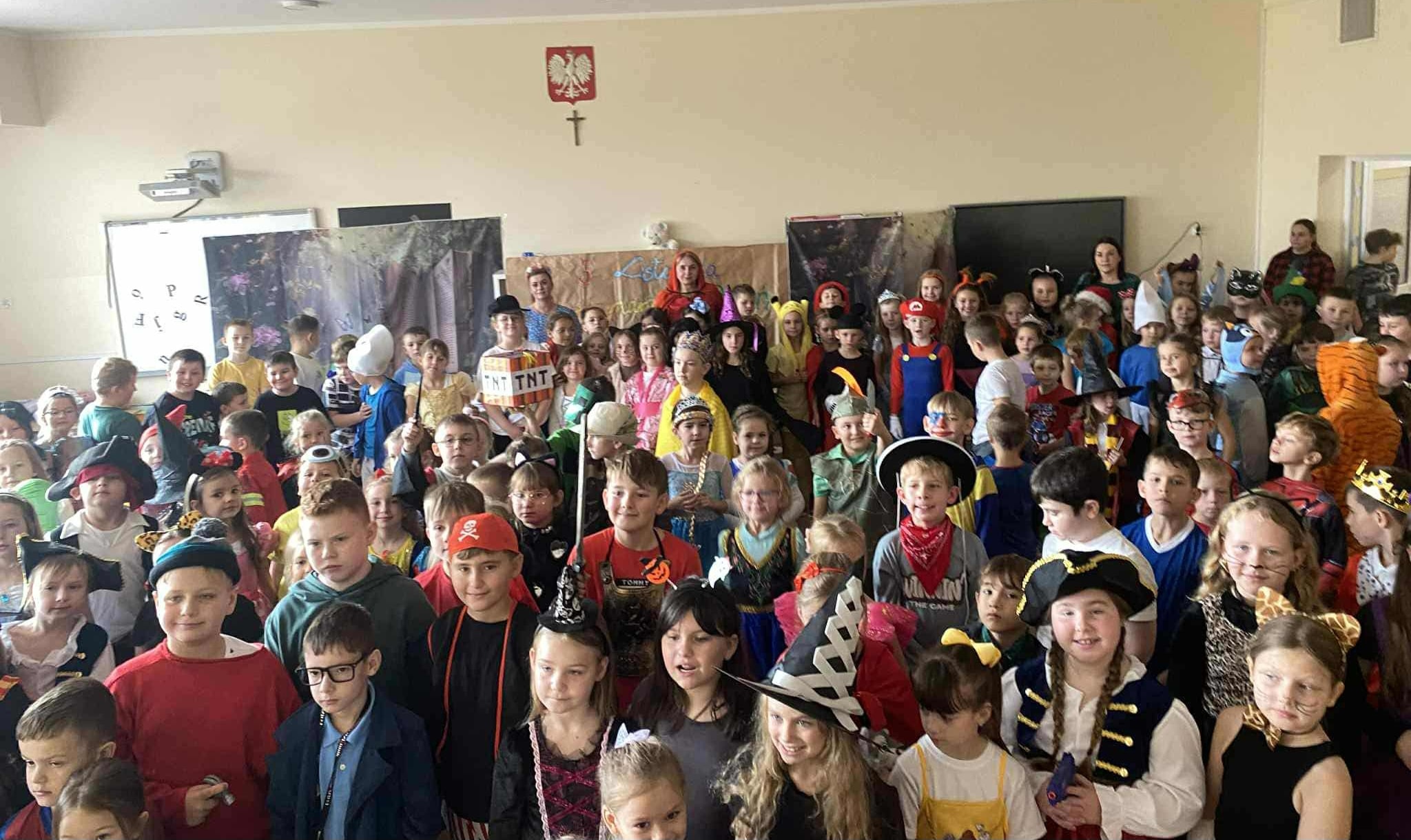 Dziś nasza szkoła zamieniła się w prawdziwą bajkową krainę! Po korytarzach spacerowały piękne królewny, rycerze, myszki Miki i Minnie, Pokemony i superbohaterowie. Pojawiło się nawet kilka czarownic (oczywiście tych dobrych!).