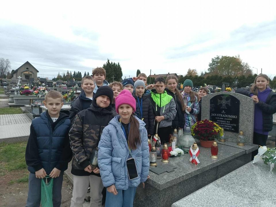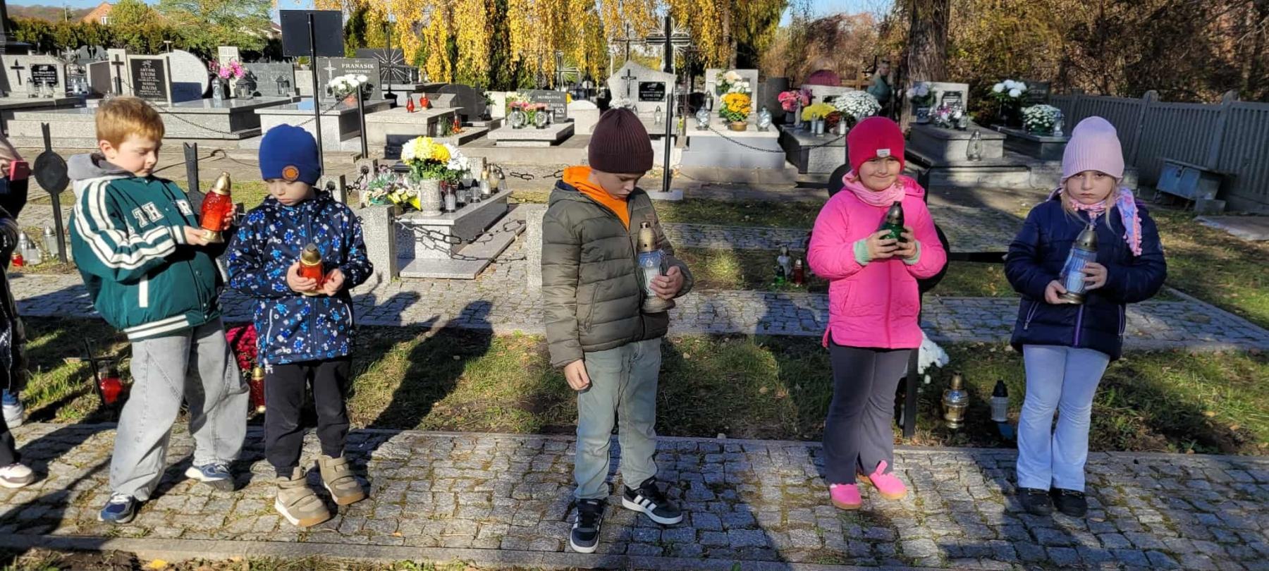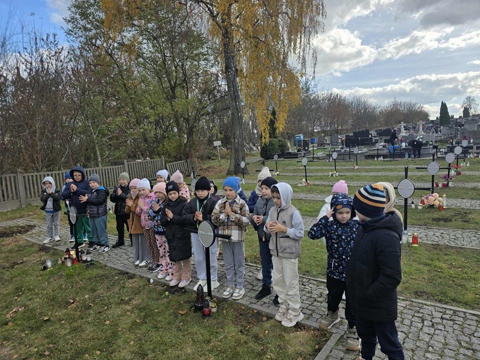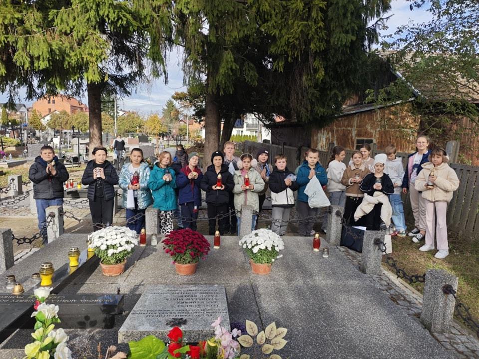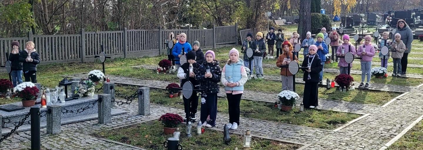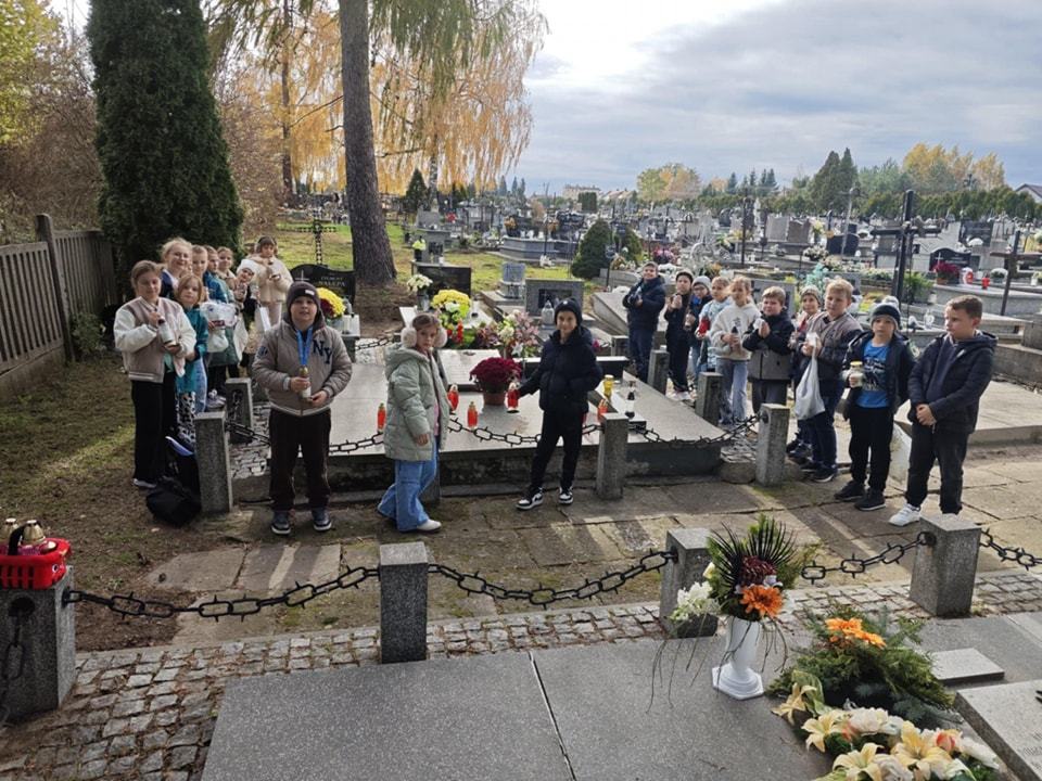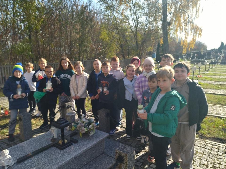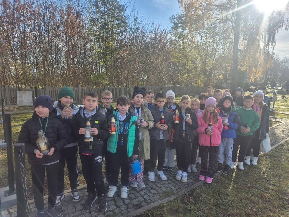 W przeddzień Wszystkich Świętych, uczniowie naszej szkoły udali się na cmentarz, aby zapalić znicze na grobach żołnierzy walczących w obronie naszej Ojczyzny. Zapalone znicze są symbolem wdzięczności i pamięci. Wizyta na cmentarzu i chwila zadumy przy żołnierskich mogiłach stały się ważną lekcją patriotyzmu. Pamiętamy…