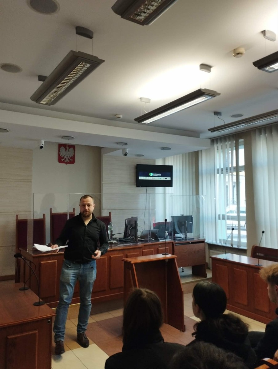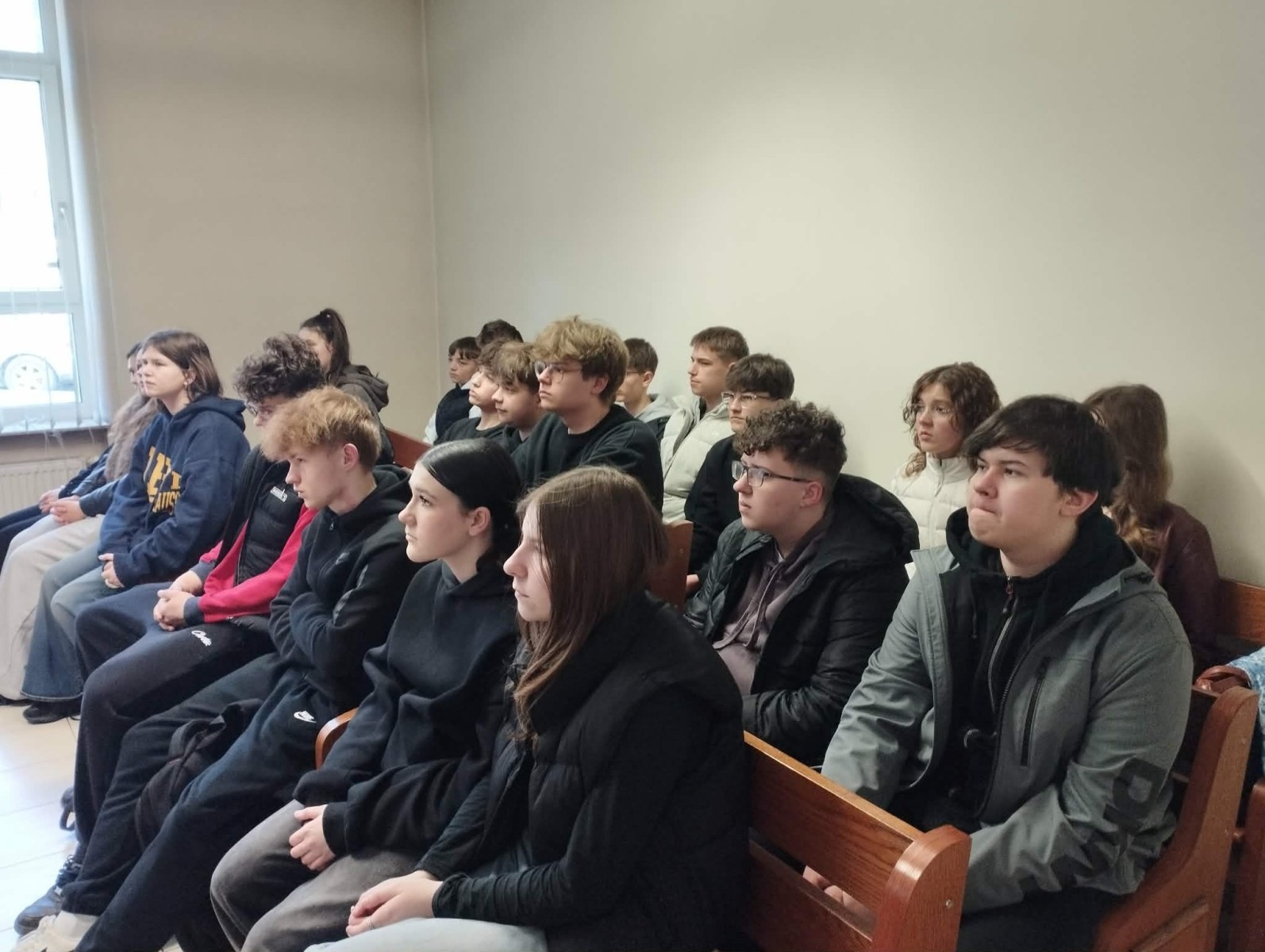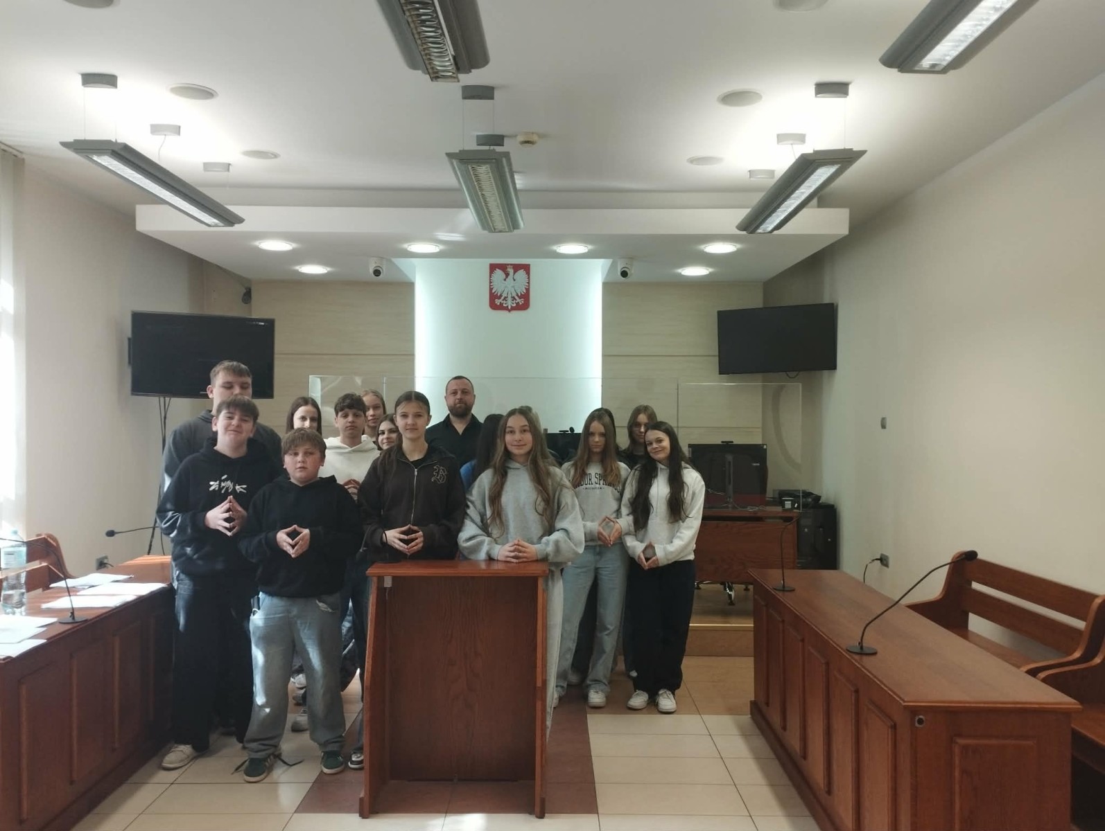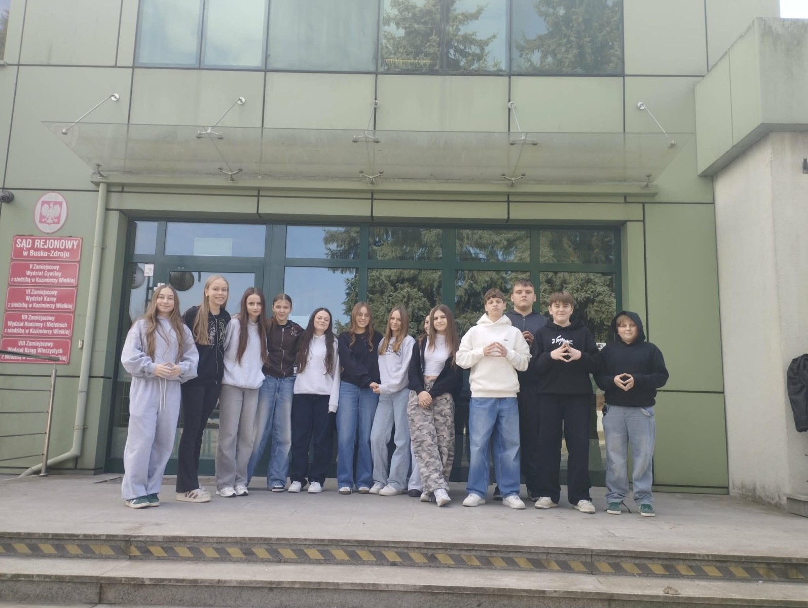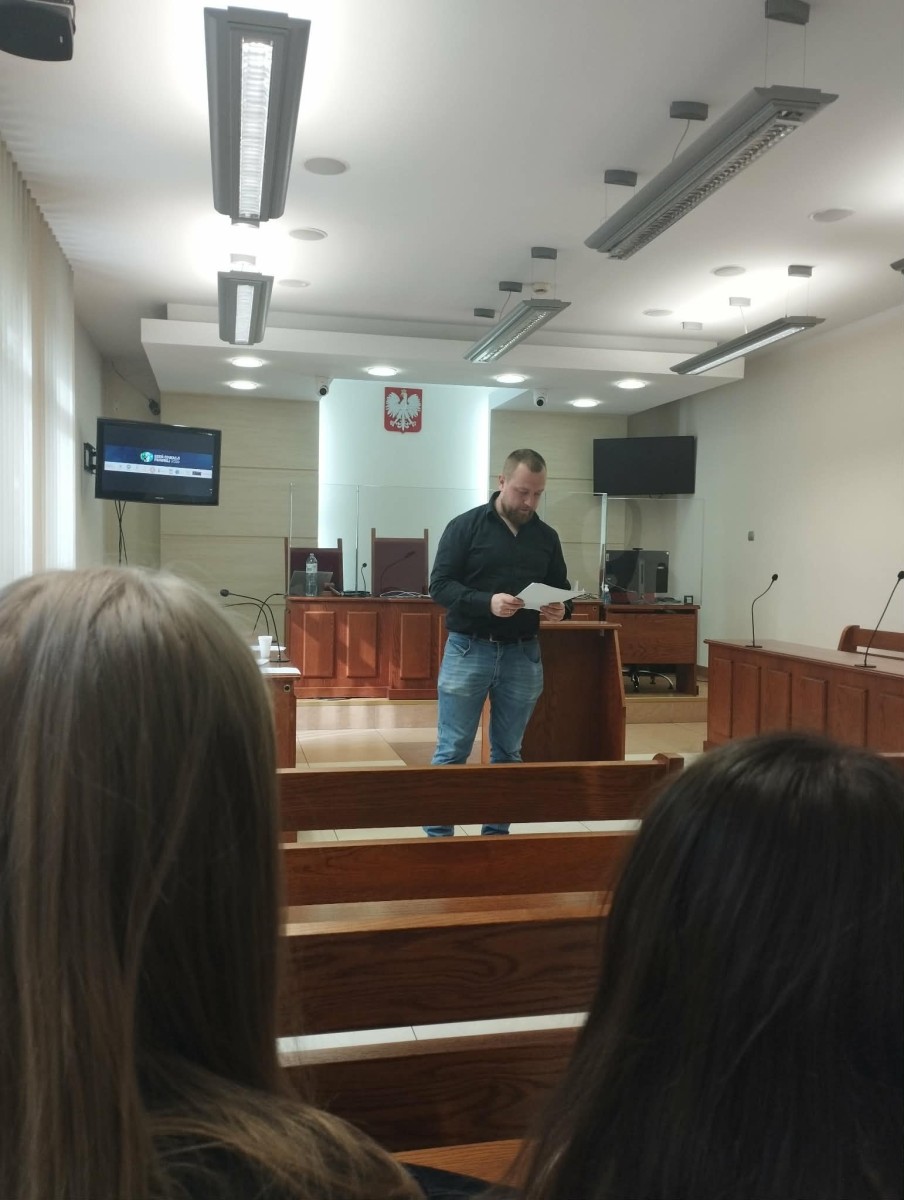 Dzięki zaproszeniu przez sędziego Sądu Rejonowego w Busku-Zdroju, pana Marka Skupiewskiego, mogli na własne oczy zobaczyć, jak wygląda prawdziwa sala rozpraw w budynku sądu w Kazimierzy Wielkiej.