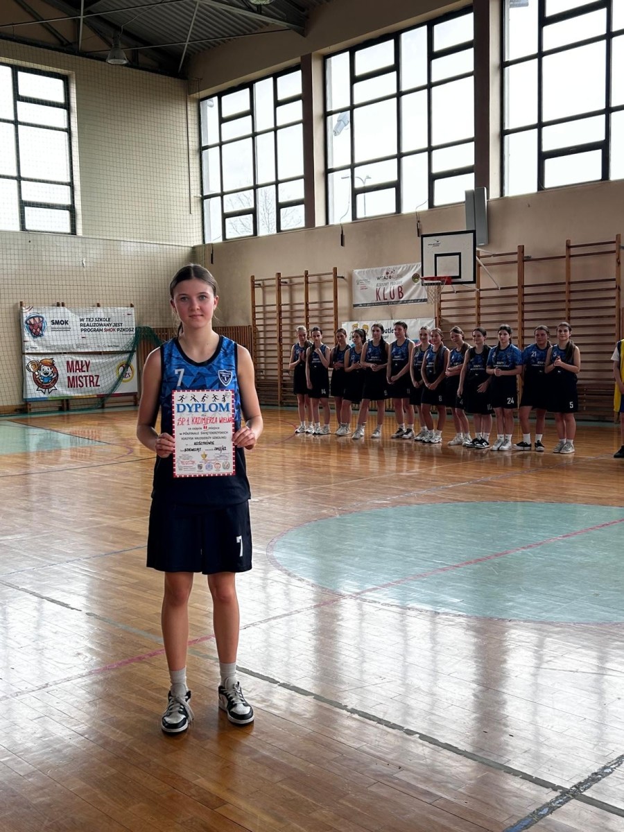 Swój ostatni turniej w barwach Jedynki rozegrały nasze koszykarki. W poniedziałek 13 kwietnia odbył się w Oleśnicy Półfinał Wojewódzki w koszykówce dziewcząt klas 7 i 8. Po porażce z gospodyniami (drużyna z Oleśnicy już 20 kwietnia zagra o mistrzostwo województwa) i wygranej ze Złotą dziewczęta zajęły drugie miejsce. Wyróżnienie dla najlepszej koszykarki zespołu zdobyła Maja Okaz, ale brawa zasługują wszystkie zawodniczki. Do grona 12 ośmioklasistek świetnie wpasowały się dwie zawodniczki z klas 7. Grupa ta zmobilizowała się bardzo: na parkiecie walka była o każdą piłkę. Zagrała każda: to przecież ostatni ich turniej jako zawodniczek SSP1. Stąd też i łzy trenerki – Pani Ewy! Dziękujemy za wieloletnie zaangażowanie koszykarek. Jedynka jest wdzięczna i dumna z Was! DZIĘKUJEMY!