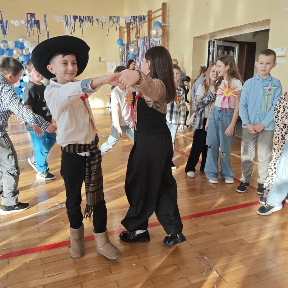 Karnawał to czas wspaniałej i radosnej zabawy. Uczniowie zawsze z niecierpliwością czekają na zabawę choinkową. W tym roku sala gimnastyczna zamieniła się w lodową krainę ale parkiet rozgrzał się do czerwoności. Wszyscy bawili się znakomicie przy rytmach różnorodnej muzyki, jak przystało na prawdziwy bal. Były pociągi, korowody, kółeczka i tańce, a uśmiechy nie schodziły z twarzy uczestników. To był udany, pełen wrażeń bal karnawałowy. Serdecznie dziękujemy Rodzicom za pomoc w jego zorganizowaniu.