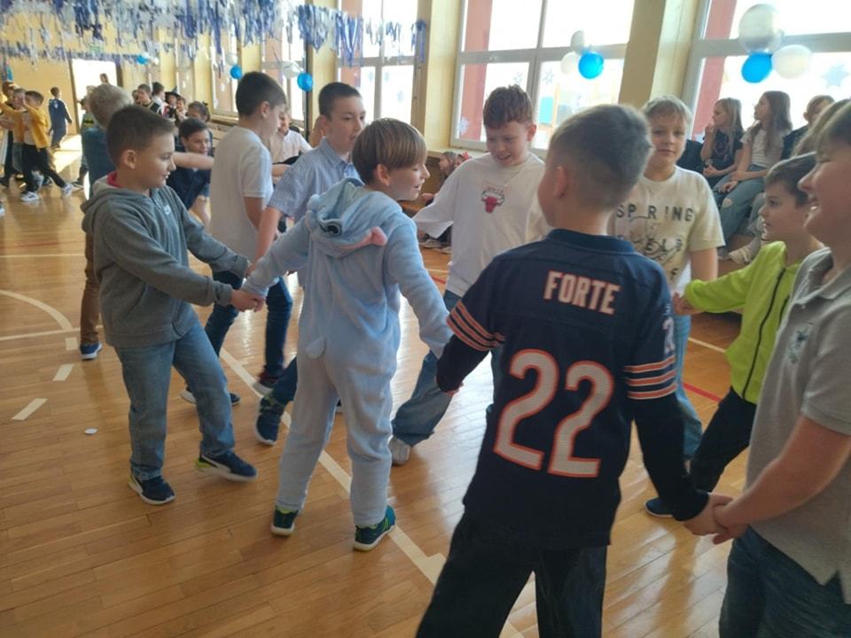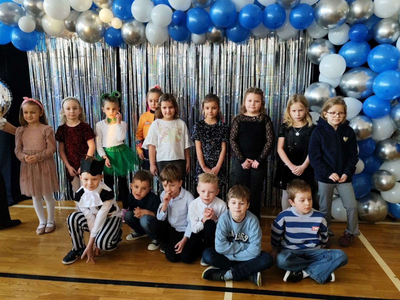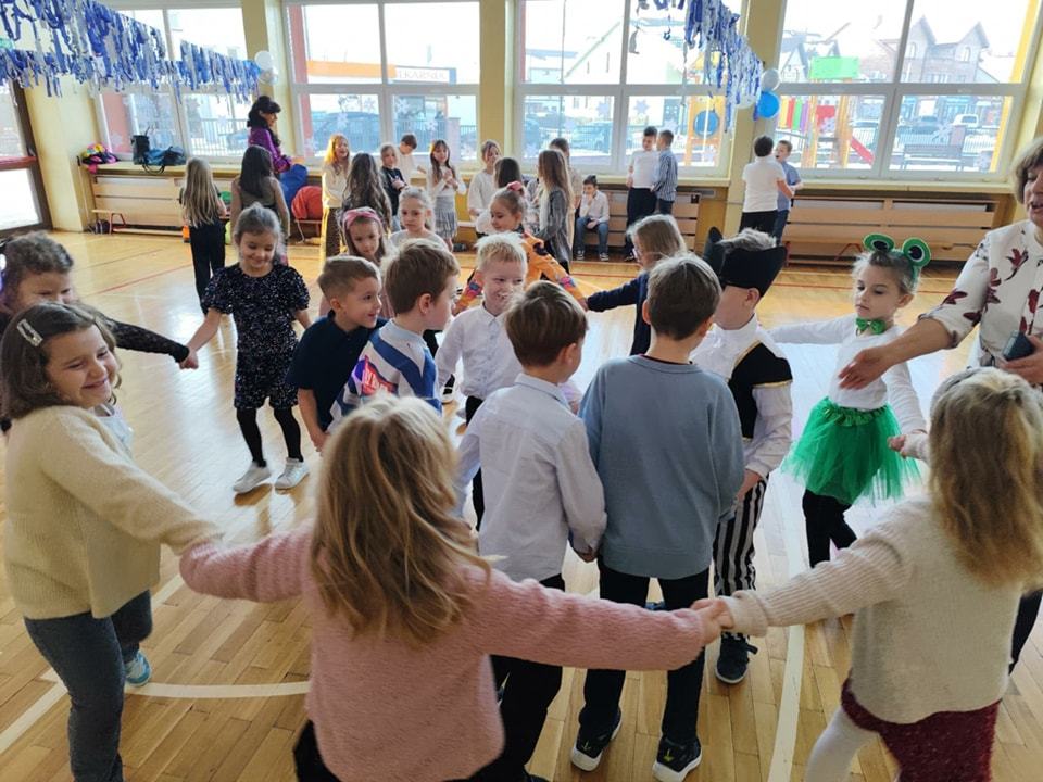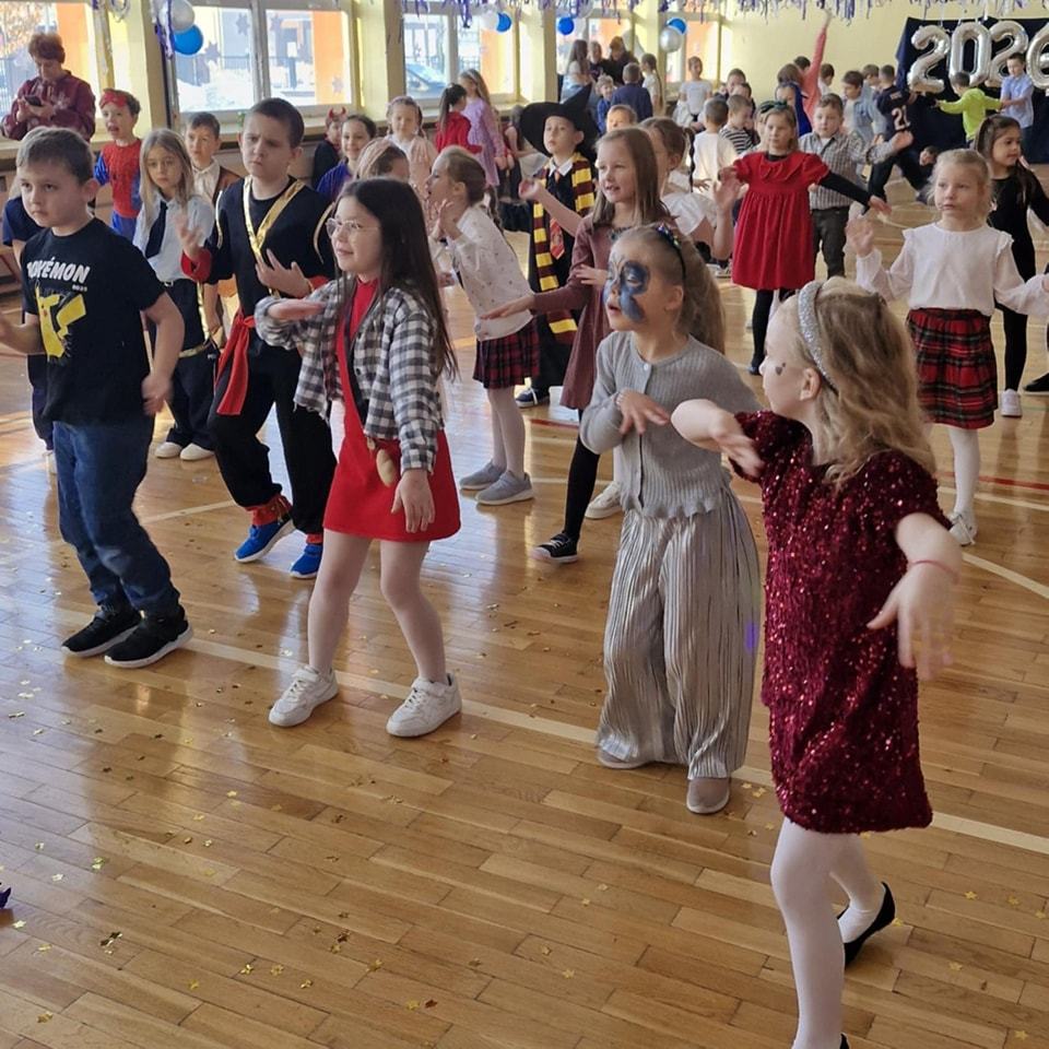 Karnawał to czas wspaniałej i radosnej zabawy. Uczniowie zawsze z niecierpliwością czekają na zabawę choinkową. W tym roku sala gimnastyczna zamieniła się w lodową krainę ale parkiet rozgrzał się do czerwoności. Wszyscy bawili się znakomicie przy rytmach różnorodnej muzyki, jak przystało na prawdziwy bal. Były pociągi, korowody, kółeczka i tańce, a uśmiechy nie schodziły z twarzy uczestników.  To był udany, pełen wrażeń bal karnawałowy. Serdecznie dziękujemy Rodzicom za pomoc w jego zorganizowaniu.