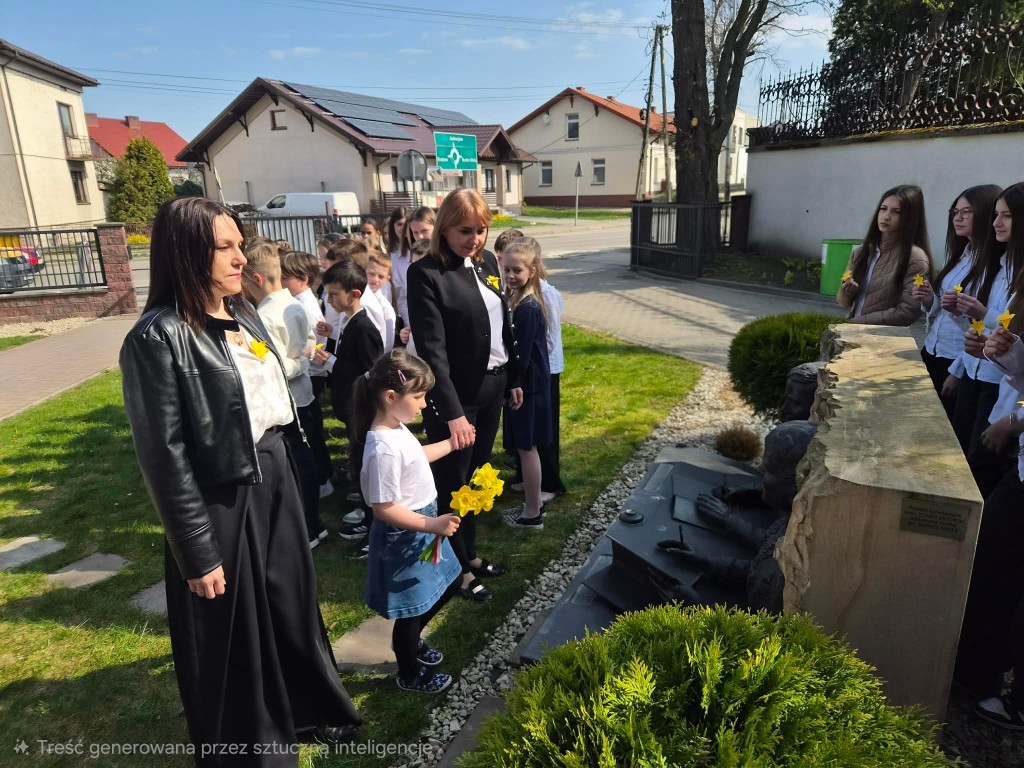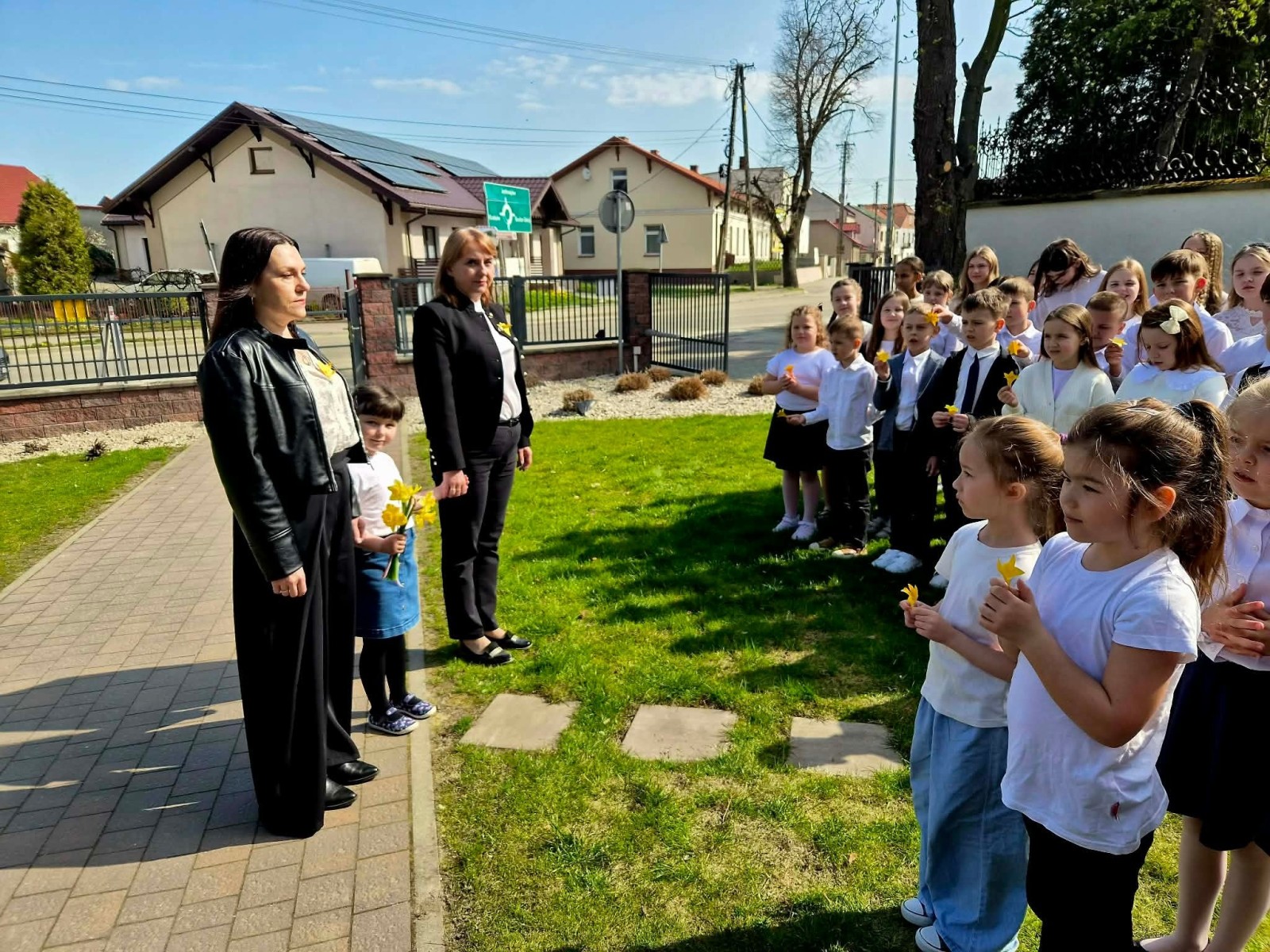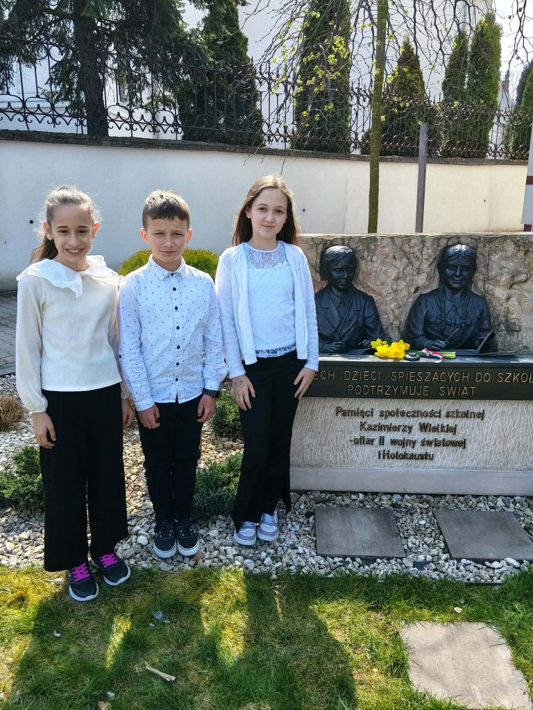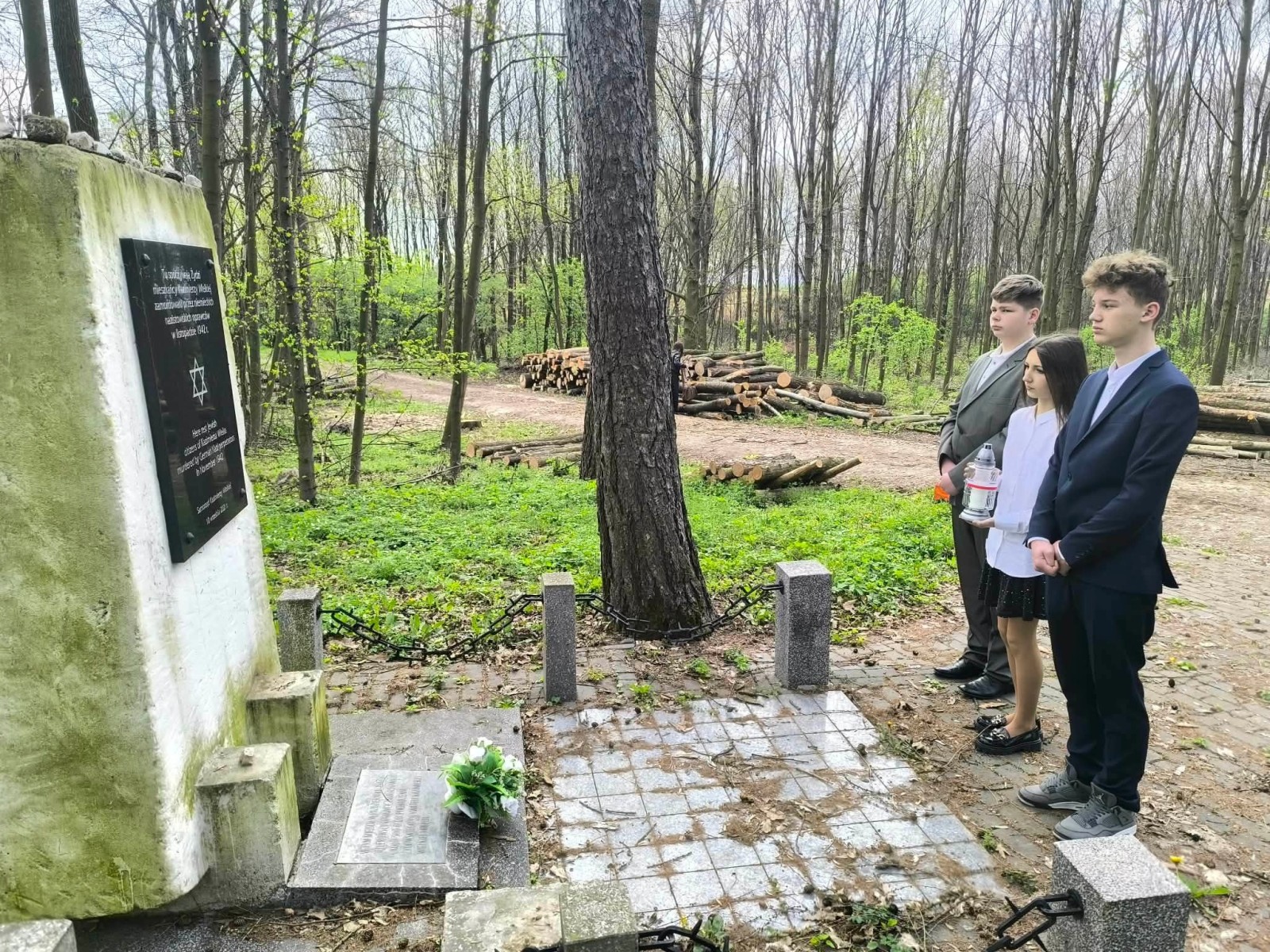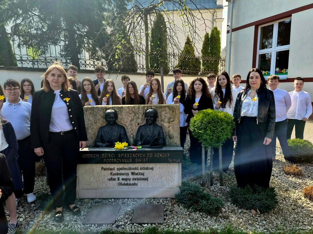 Nasi uczniowie wraz z panią Dyrektor Katarzyną Erbel, panią Wicedyrektor Anetą Gądzik złożyli w Słonowicach na mogile Żydów z Kazimierzy Wielkiej i okolic, zamordowanych przez Niemców w 1942r. żonkile oraz zapalili znicze pamięci. Przed szkołą przy polsko-żydowskiej ławeczce wspomnieliśmy również dzieci żydowskie, które były uczniami naszej szkoły. Pamiętamy!