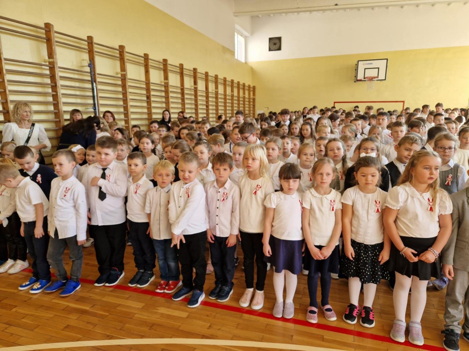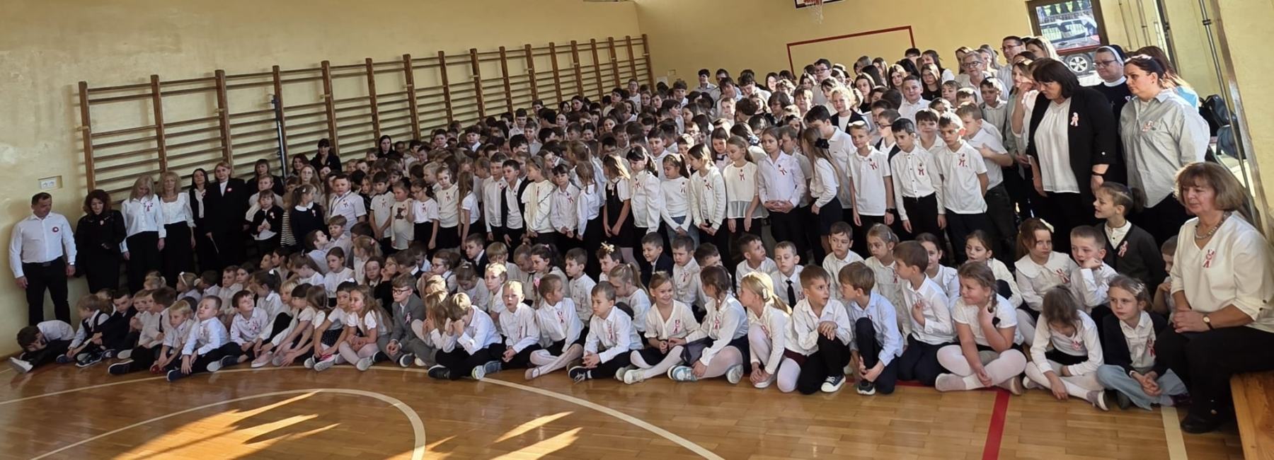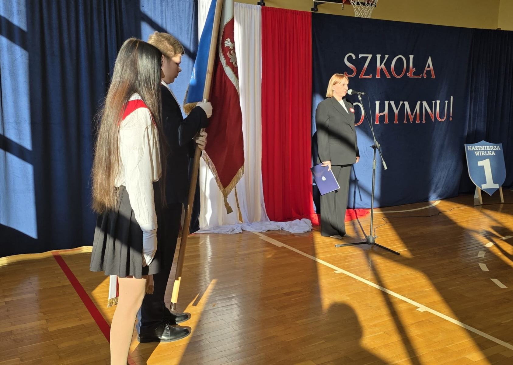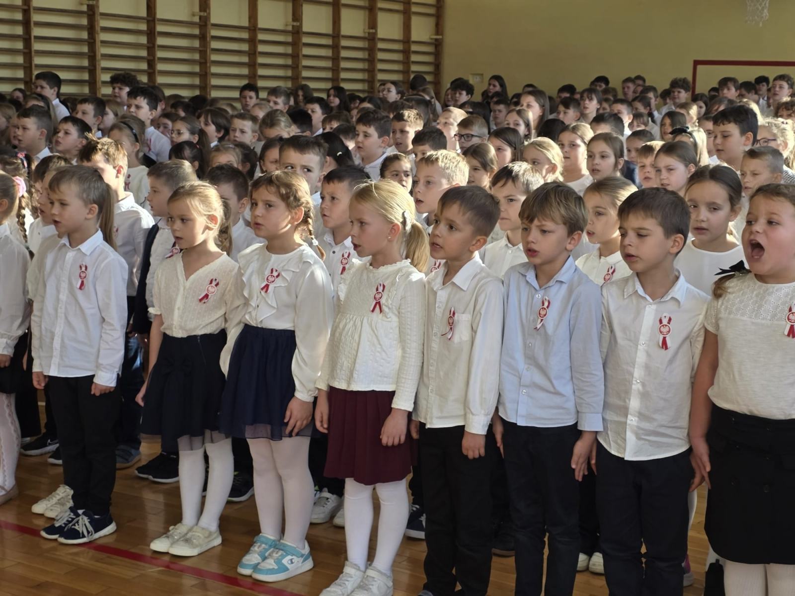 „Spotykamy się dzisiaj aby wspólnie, w ramach ogólnopolskiej akcji „Szkoła do Hymnu”, uroczyście odśpiewać hymn państwowy Rzeczypospolitej Polskiej” – tymi słowami powitała dzisiaj całą społeczność szkolną P. Dyrektor Katarzyna Erbel.