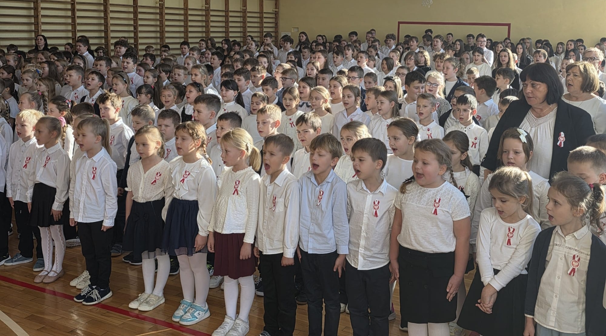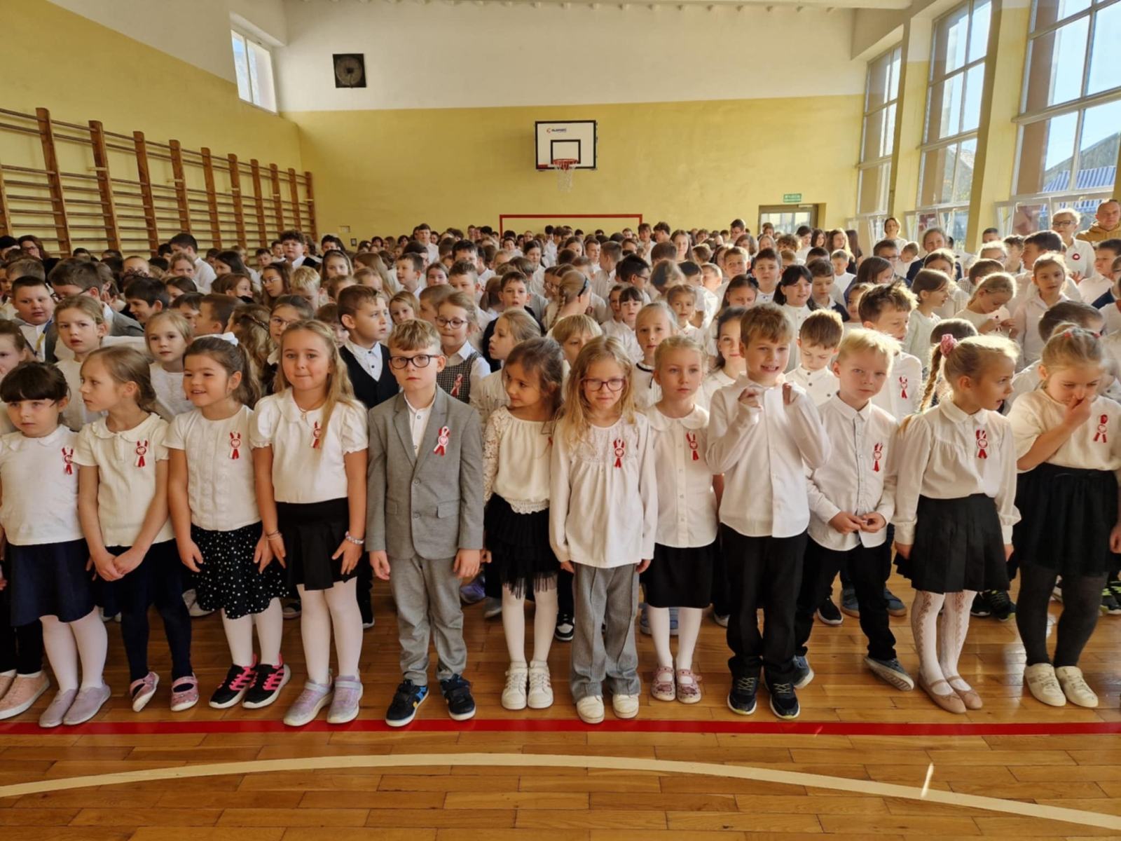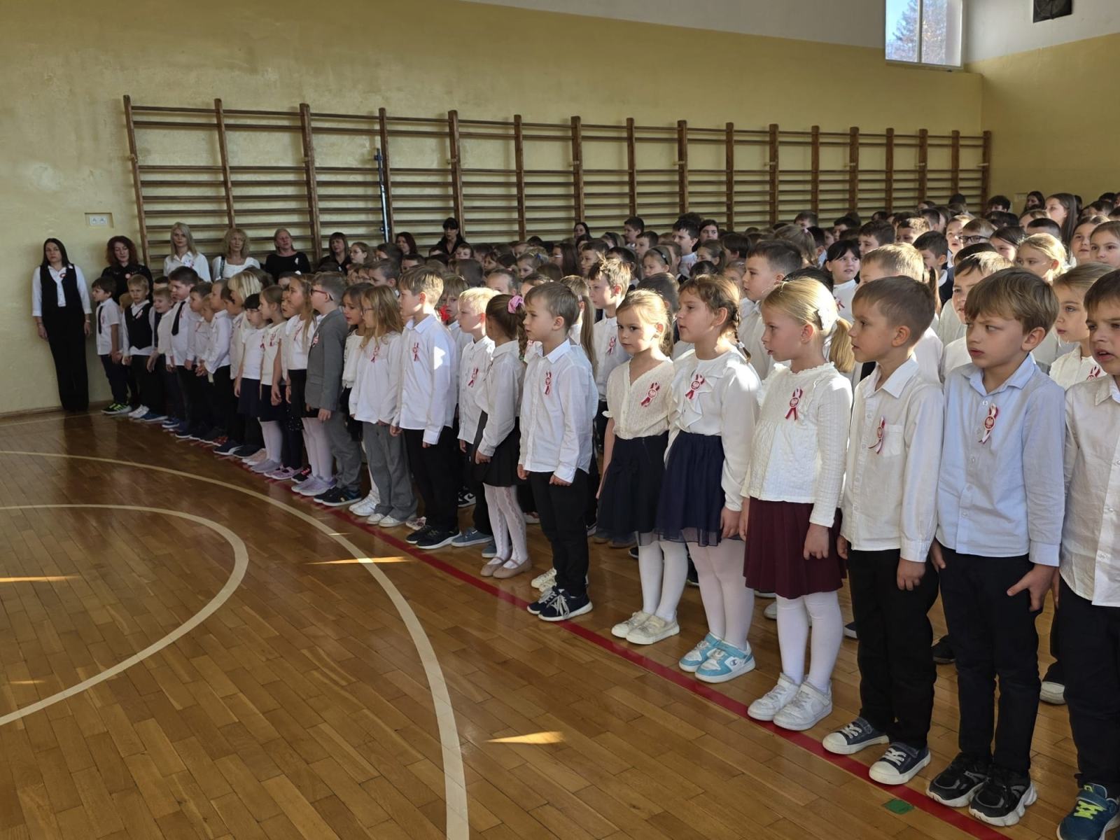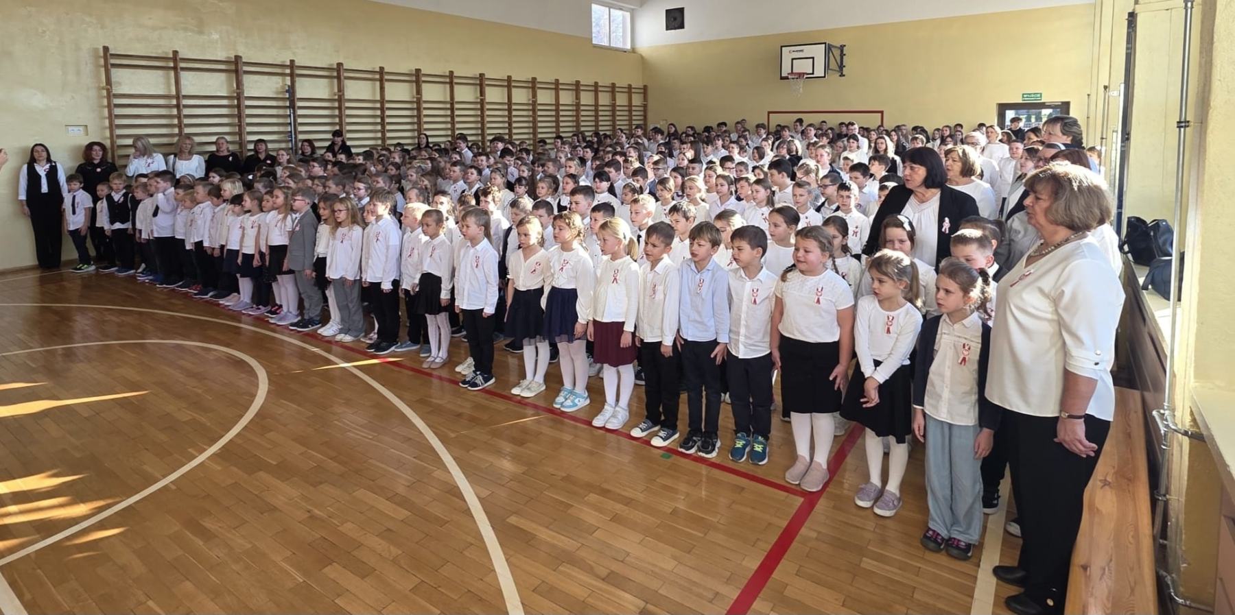 „Spotykamy się dzisiaj aby wspólnie, w ramach ogólnopolskiej akcji „Szkoła do Hymnu”, uroczyście odśpiewać hymn państwowy Rzeczypospolitej Polskiej” – tymi słowami powitała dzisiaj całą społeczność szkolną P. Dyrektor Katarzyna Erbel.