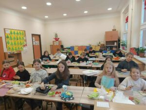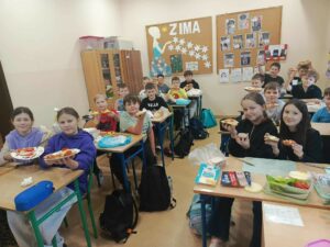 Na lekcji przyrody uczniowie klas czwartych rozmawiali z p. Dorotą Stokłosą o tym, jak to, co jemy każdego dnia, wpływa na nasze zdrowie. Dlaczego zdrowe odżywianie jest tak ważne? To, co jemy każdego dnia, ma ogromny wpływ na nasze zdrowie i samopoczucie. Niestety, spożywanie zbyt dużej ilości cukrów i tłuszczów może prowadzić do wielu chorób, a niedobór witamin osłabia odporność organizmu.