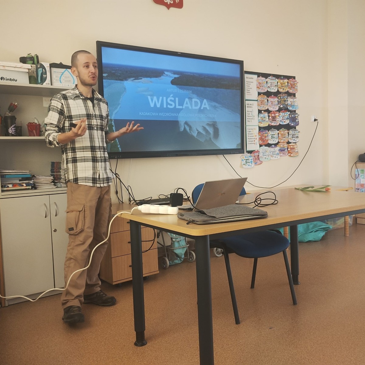 Dzisiaj w naszej szkole z inicjatywy ZSR w Cudzynowicach odbyło się spotkanie z Panem Arturem Czermakiem, podróżnikiem, reportażystą. Opowiedział nam o autorskiej wyprawie kajakiem pod nazwą „Wiślada”.