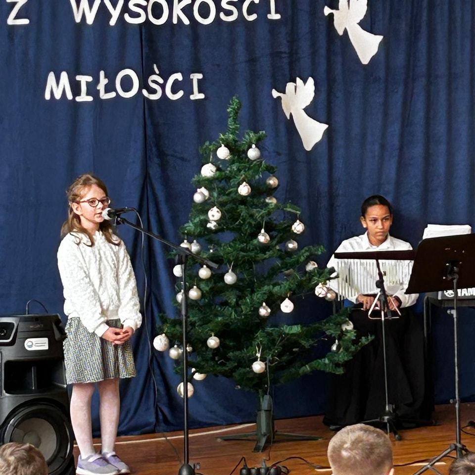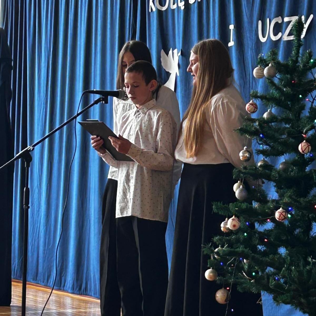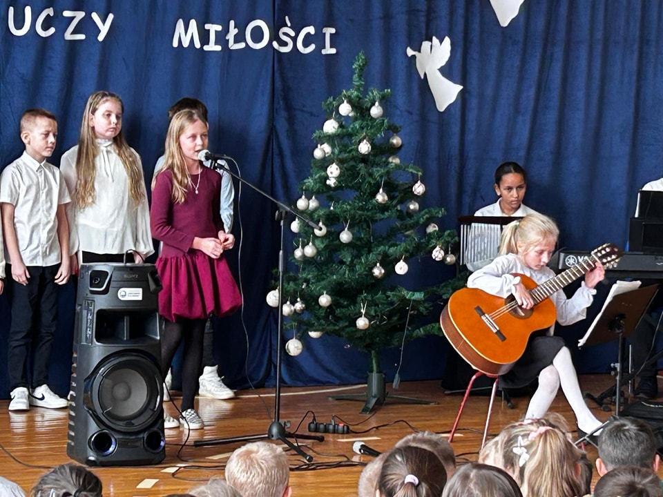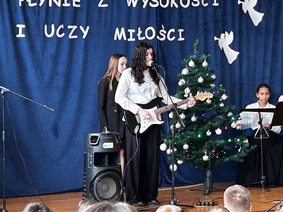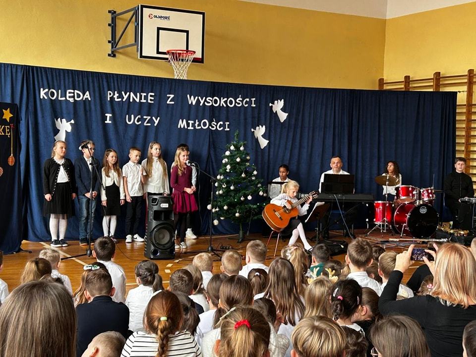 W dzisiejszym, wyjątkowym dniu cała społeczność szkolna wzięła udział w niezwykłym koncercie kolęd, pastorałek i świątecznych piosenek przygotowanym przez p. Ewę Piotrowską i p. Grzegorza Krawczuka. Nasi wspaniali artyści, wśród których znaleźli się utalentowani soliści, instrumentaliści oraz cudowny szkolny chór, przenieśli nas w zaczarowany, muzyczny świat Świąt Bożego Narodzenia. Wypełniona po brzegi sala gimnastyczna śpiewała z głębi swoich serc. Śpiewali Uczniowie, Nauczyciele, Pracownicy szkoły oraz Rada Rodziców. Po koncercie przyszła pora na niespodziankę – Bożonarodzeniowy Konkurs „Szansa na gwiazdkę”. Ależ to były emocje! Przedstawiciele klas losowali kolędę i śpiewali, a wraz z nimi cała sala. Kto został zwycięzcą? O tym zadecydowało jury w osobach pani dyrektor Katarzyny Erbel i pani wicedyrektor Anety Gądzik. I okazało się, że zwycięzcami… są… wszyscy uczestnicy! Dziękujemy za piękny, magiczny koncert i gratulujemy pani Ewie i panu Grzegorzowi oraz wszystkim artystom, zarówno tym, którzy występowali jak i całej naszej cudownej społeczności szkolnej śpiewającej z głębi serc.