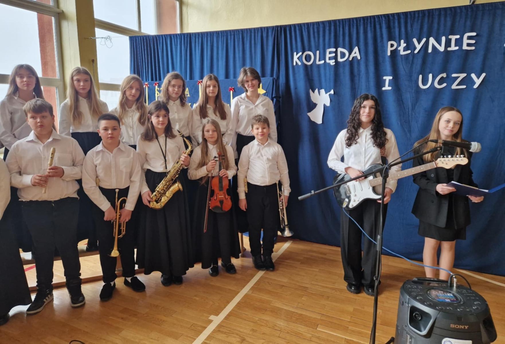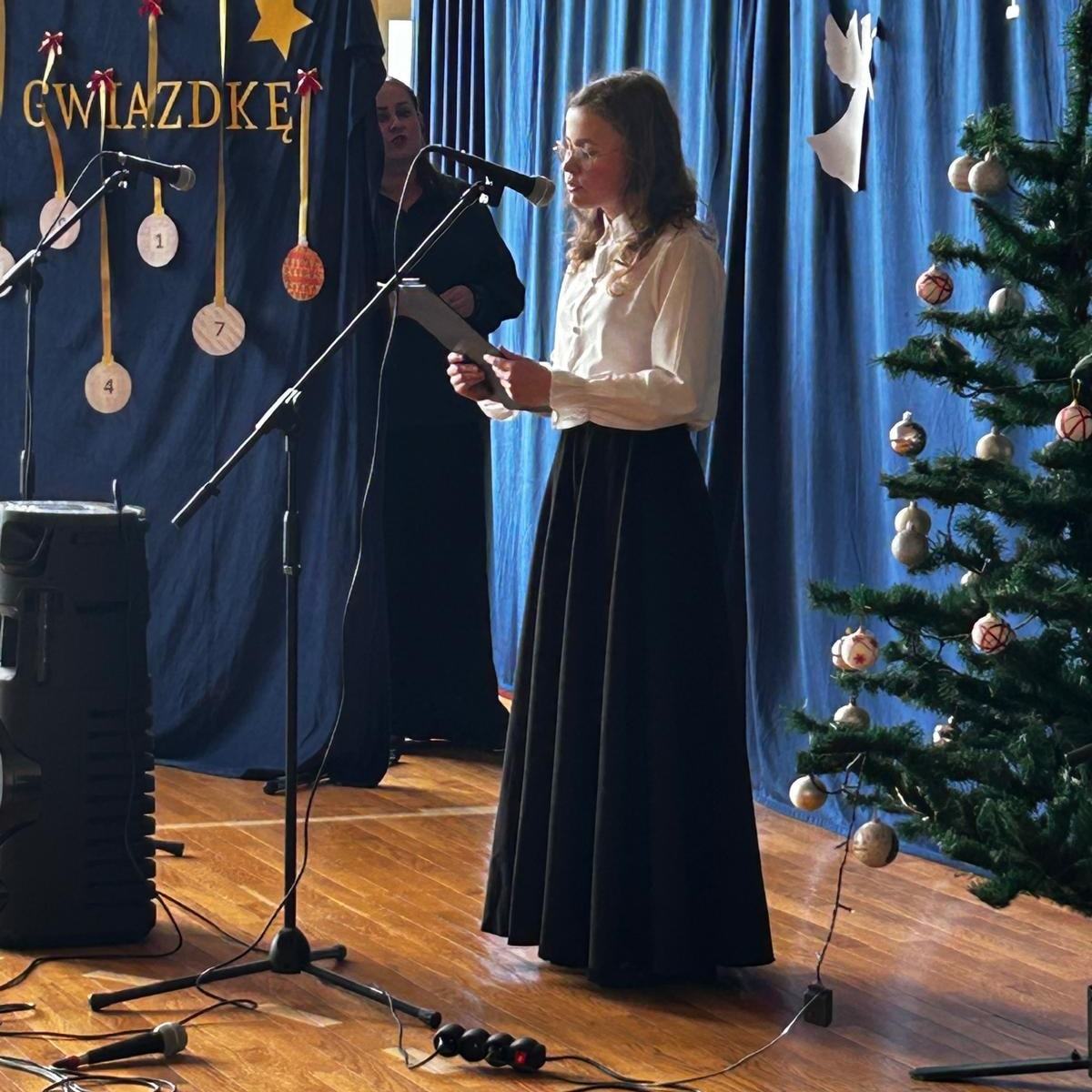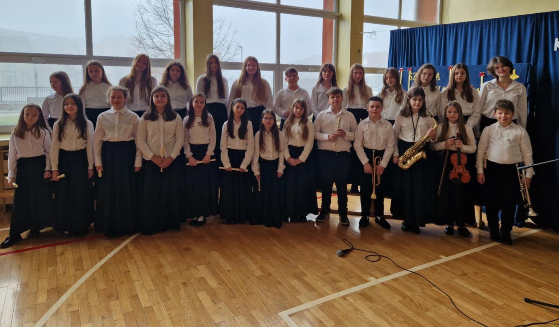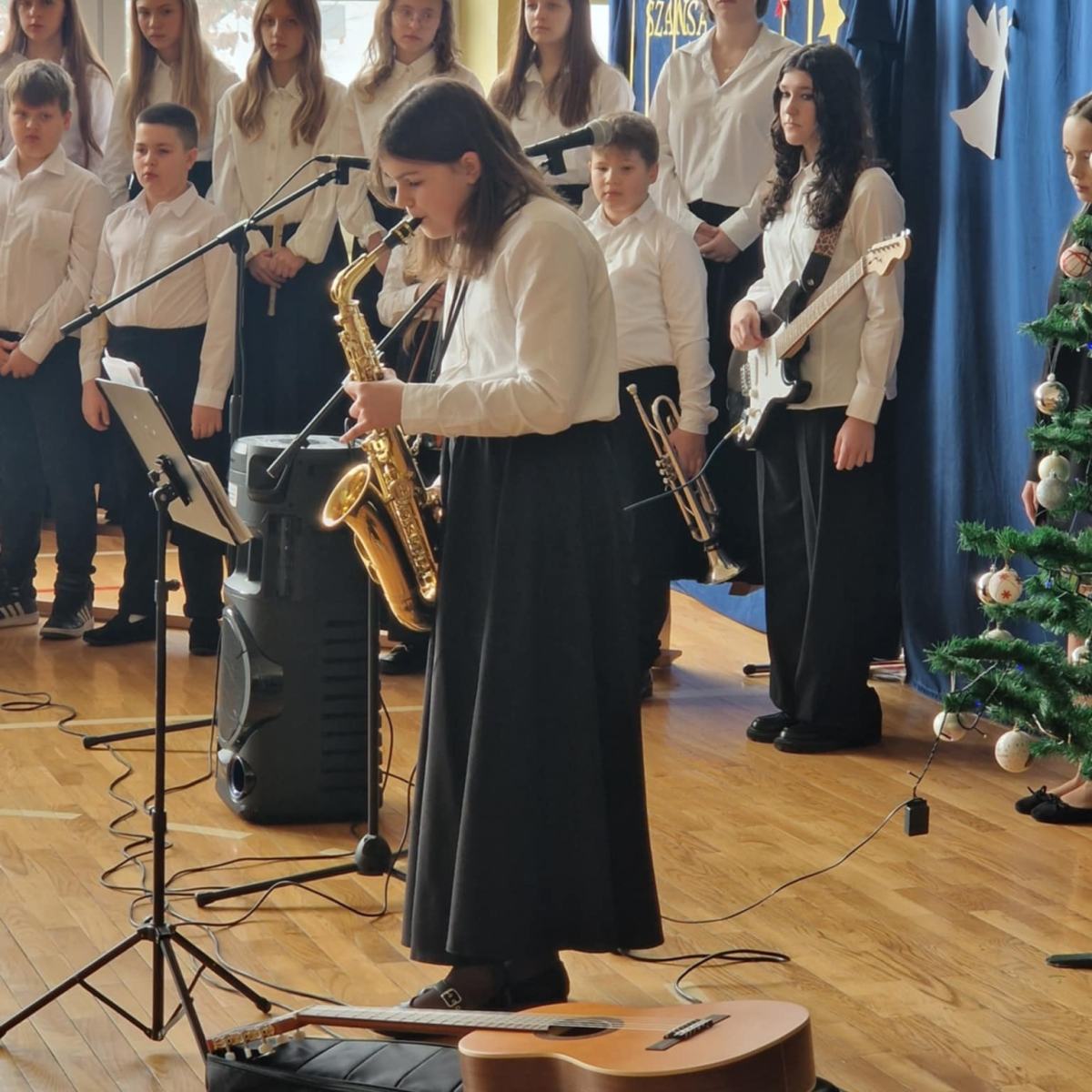 W dzisiejszym, wyjątkowym dniu cała społeczność szkolna wzięła udział w niezwykłym koncercie kolęd, pastorałek i świątecznych piosenek przygotowanym przez p. Ewę Piotrowską i p. Grzegorza Krawczuka. Nasi wspaniali artyści, wśród których znaleźli się utalentowani soliści, instrumentaliści oraz cudowny szkolny chór, przenieśli nas w zaczarowany, muzyczny świat Świąt Bożego Narodzenia. Wypełniona po brzegi sala gimnastyczna śpiewała z głębi swoich serc. Śpiewali Uczniowie, Nauczyciele, Pracownicy szkoły oraz Rada Rodziców. Po koncercie przyszła pora na niespodziankę – Bożonarodzeniowy Konkurs „Szansa na gwiazdkę”. Ależ to były emocje! Przedstawiciele klas losowali kolędę i śpiewali, a wraz z nimi cała sala. Kto został zwycięzcą? O tym zadecydowało jury w osobach pani dyrektor Katarzyny Erbel i pani wicedyrektor Anety Gądzik. I okazało się, że zwycięzcami… są… wszyscy uczestnicy! Dziękujemy za piękny, magiczny koncert i gratulujemy pani Ewie i panu Grzegorzowi oraz wszystkim artystom, zarówno tym, którzy występowali jak i całej naszej cudownej społeczności szkolnej śpiewającej z głębi serc.