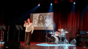 Nasza szkoła zaprezentowała piosenki Anny Jantar w wykonaniu p. Ewy Piotrowskiej, przy akompaniamencie Marty Sarr – perkusja, Julii Wróbel – gitara i p. Grzegorza Krawczuka – klawisze. Kilka słów o Annie Jantar, jej twórczości, przedstawiła Oliwia Kwiecień. Cudowny występ został nagrodzony przez publiczność gromkimi brawami.