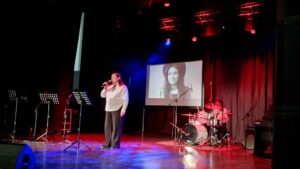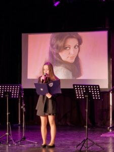 Nasza szkoła zaprezentowała piosenki Anny Jantar w wykonaniu p. Ewy Piotrowskiej, przy akompaniamencie Marty Sarr – perkusja, Julii Wróbel – gitara i p. Grzegorza Krawczuka – klawisze. Kilka słów o Annie Jantar, jej twórczości, przedstawiła Oliwia Kwiecień. Cudowny występ został nagrodzony przez publiczność gromkimi brawami.