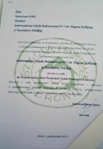 Nasza szkoła w projekcie „Szkoła Promująca Zdrowie”!