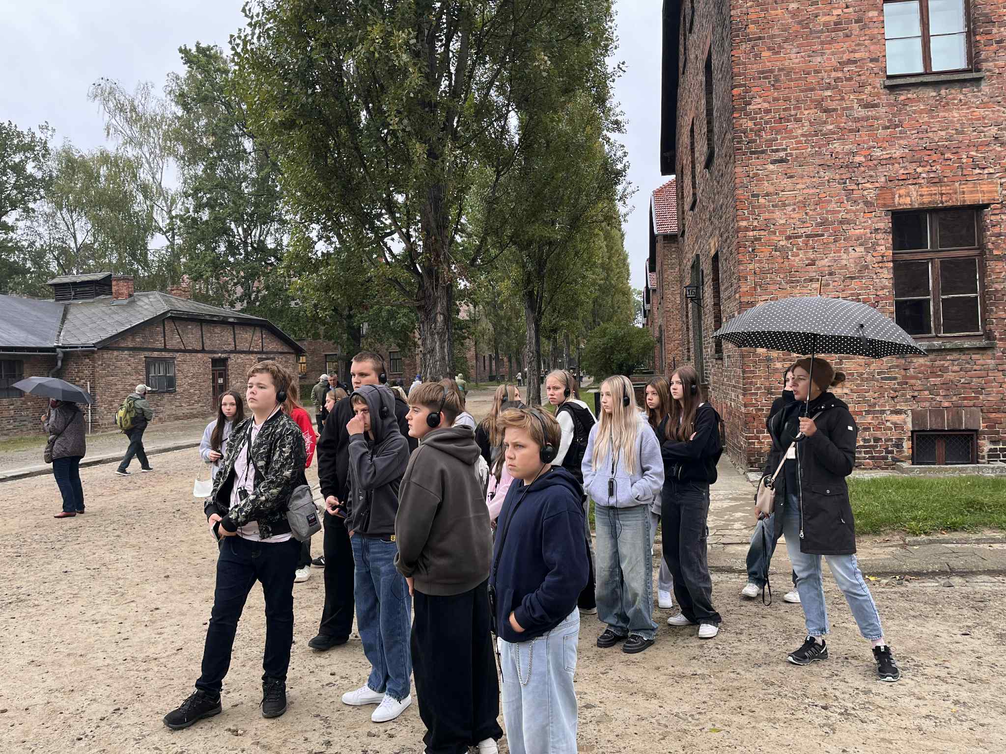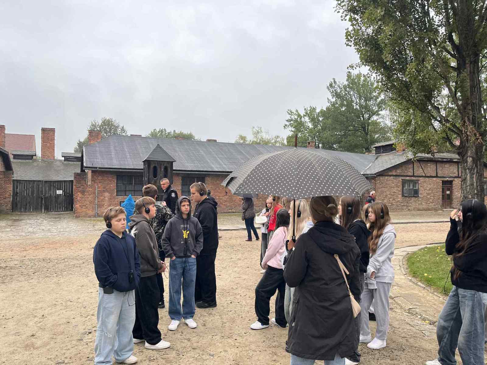 Zwiedzanie Auschwitz jest zawsze dla naszych ósmoklasistów silnym przeżyciem. W tym roku wizytę w tym miejscu pamięci złożyli uczniowie klasy 8a i 8b pod opieką wychowawczyń: Katarzyny Boryckiej i Eweliny Sambór, oraz pań: Anny Paciuch i Bernadety Sitko. Przejście śladami więźniów po obozie Auschwitz i Birkenau uświadomiło młodzieży tragizm losów Polaków, Żydów i innych nacji czy grup społecznych uznawanych za niewygodnych dla nazistów. W bardzo obrazowy sposób losy te zostały ukazane podczas warsztatów „Historia zapisana w przedmiotach”, gdzie uczniowie poznawali jednostkowe historie poszczególnych więźniów poprzez należące do nich przedmioty osobistego użytku. Była to smutna, ale też przejmująca lekcja historii, której puentę stanowiły przytoczone przez naszą przewodniczkę słowa Mariana Turskiego: „Auschwitz nie spadło z nieba […] Nie bądźcie obojętni”.