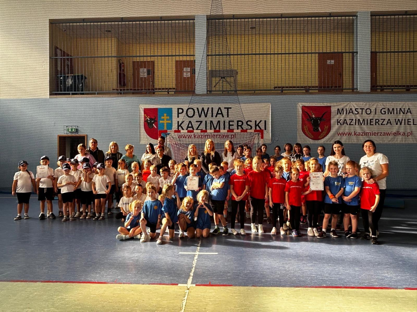 30 października nasi najmłodsi uczniowie przygotowani przez p. Martę Maj wzięli udział w 4. Świętokrzyskiej Przedszkoliadzie. Dzieci mierzyły się w konkurencjach opartych na naturalnych formach ruchu – biegu z przekładaniem szarfy, biegu zwinnościowym z zamianą piłek, rzucie woreczkiem do koła hula hop oraz skoku w dal z miejsca. Olimpiadzie towarzyszyła wspaniała atmosfera, było dużo radości, śmiechu i zdrowej rywalizacji. Koordynatorem olimpiady była p. Aneta Gądzik. Nasi młodzi sportowcy zajęli 3 miejsce! Gratulujemy!!!