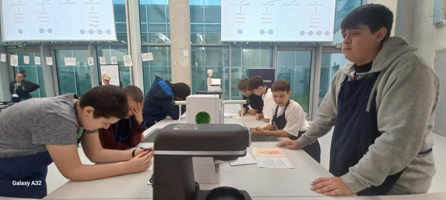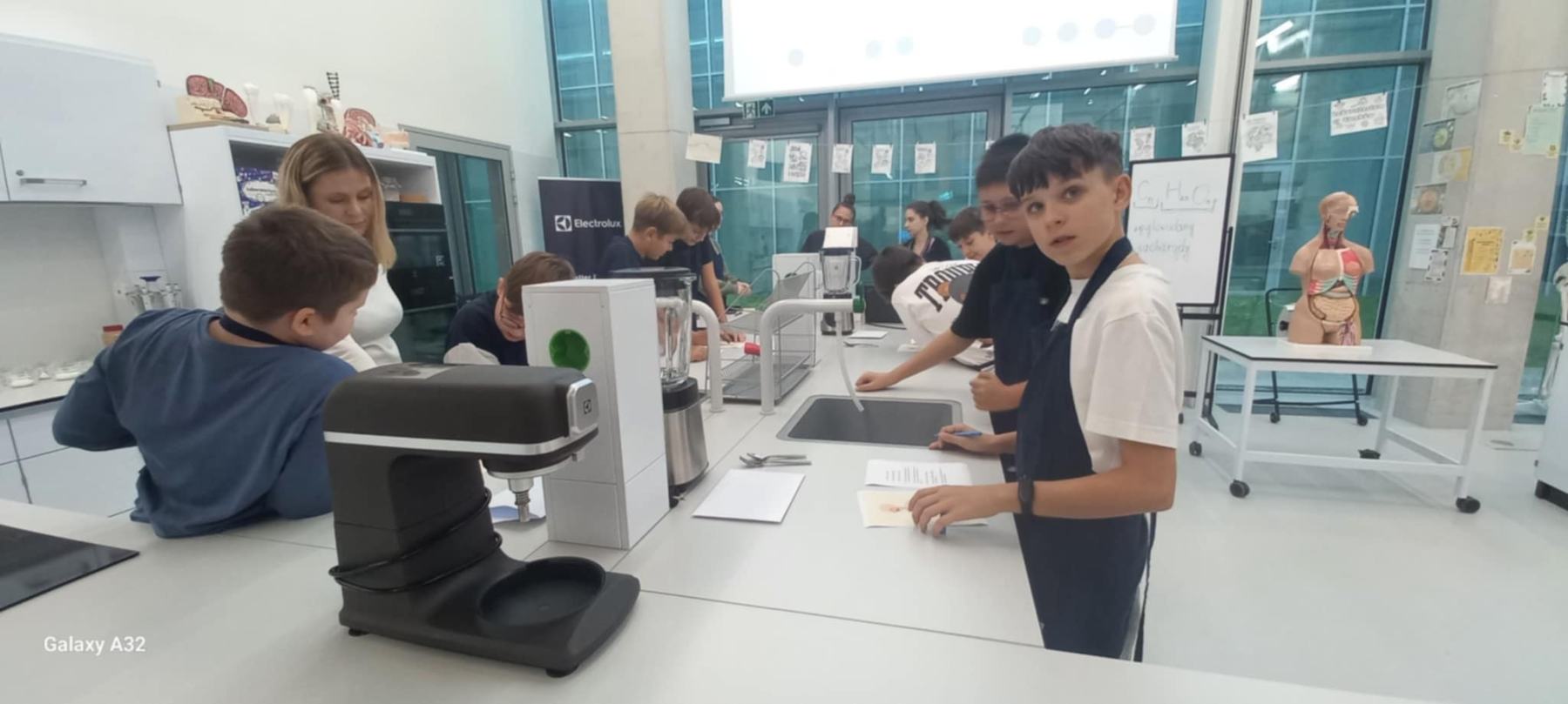Podczas warsztatów pt.: „Cukier niejedno ma imię” w Laboratorium Smaków, uczniowie mogli dowiedzieć się, jak rozpoznać różne rodzaje cukrów. Wspólnie wykonywali eksperymenty oraz przygotowywali słodką przekąskę bez dodatku cukru. Panie z Laboratorium Smaków nauczyły nas, jak podejmować dobre decyzje żywieniowe, nie odmawiając sobie przyjemności z jedzenia słodkości.