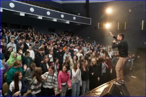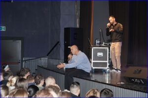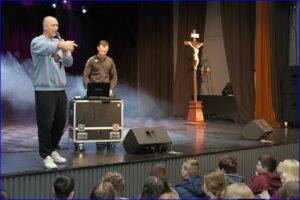 Jacek „Heres” Zajkowski i Piotr Zalewski słowem i muzyką w rytmie rapu dzielili się z młodzieżą doświadczeniem swojej życiowej drogi i problemami, które rozwiązali dzięki miłości swoich bliskich i wierze. Spotkanie miało charakter ewangelizacyjny, profilaktyczny i motywacyjny.