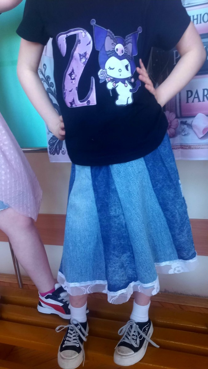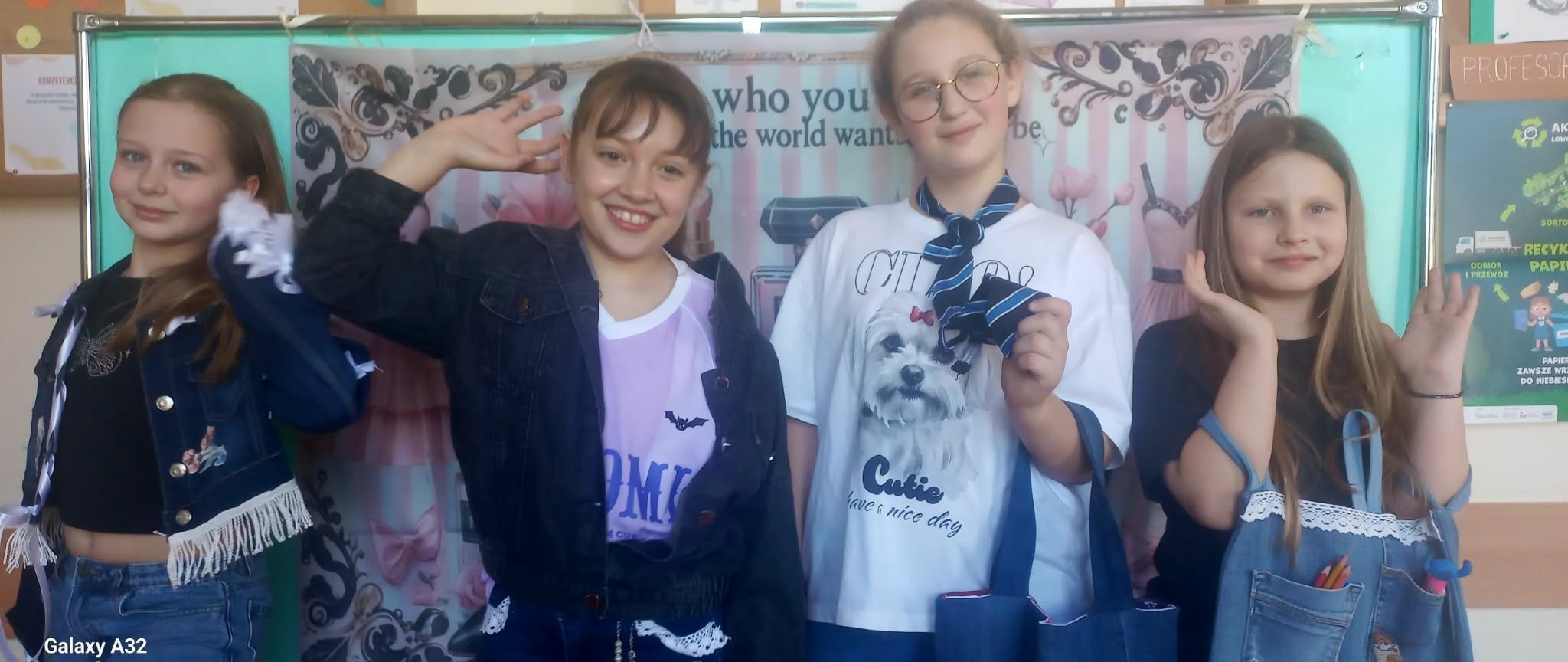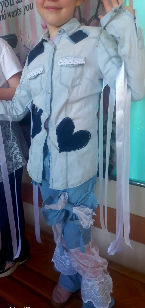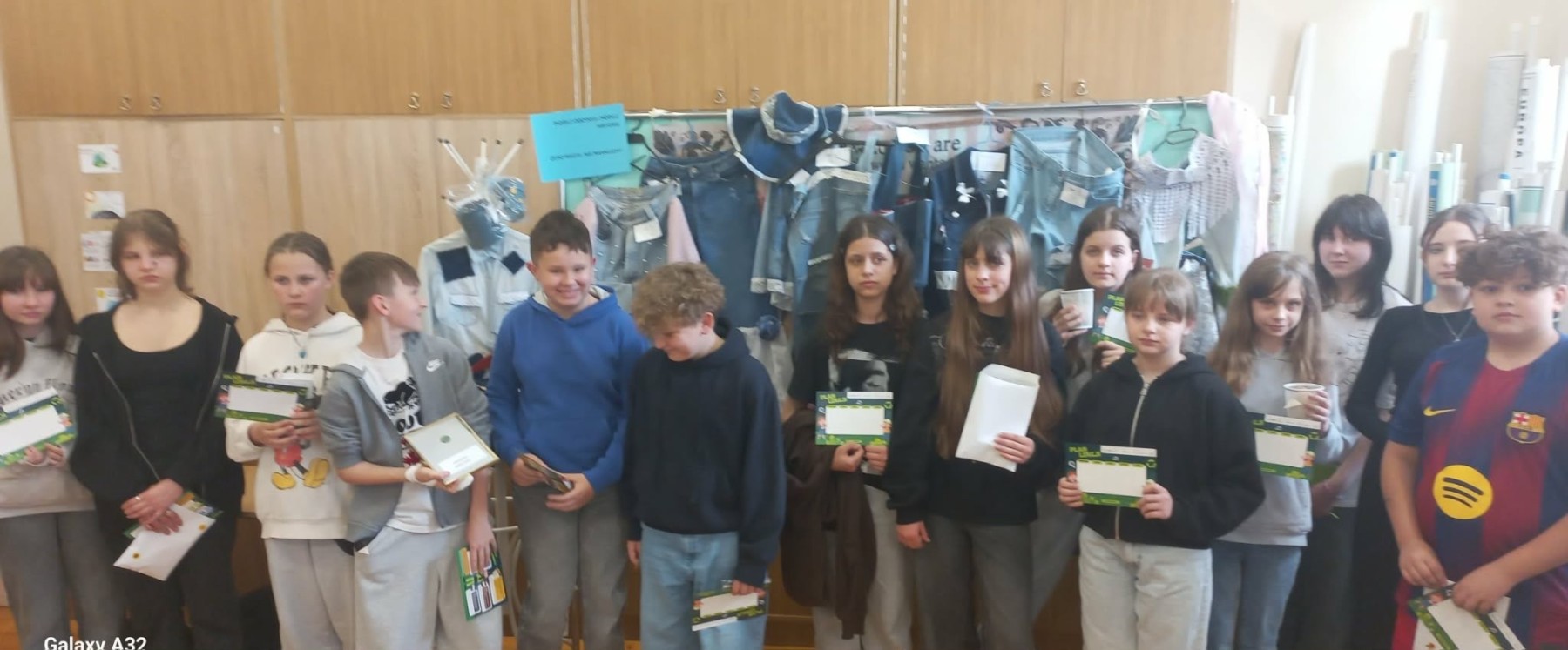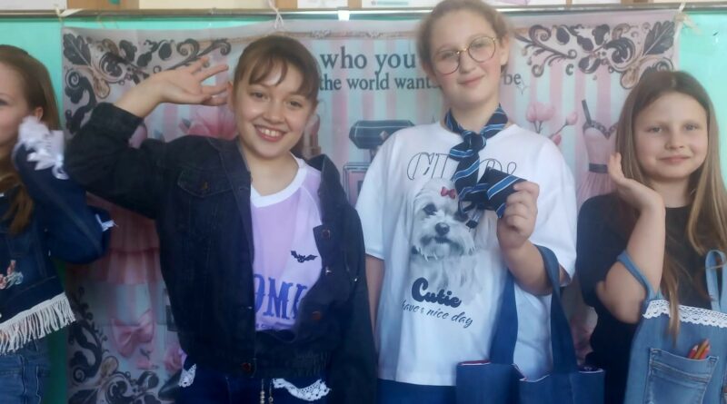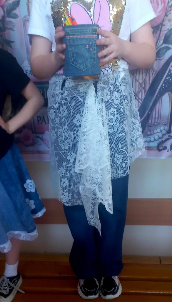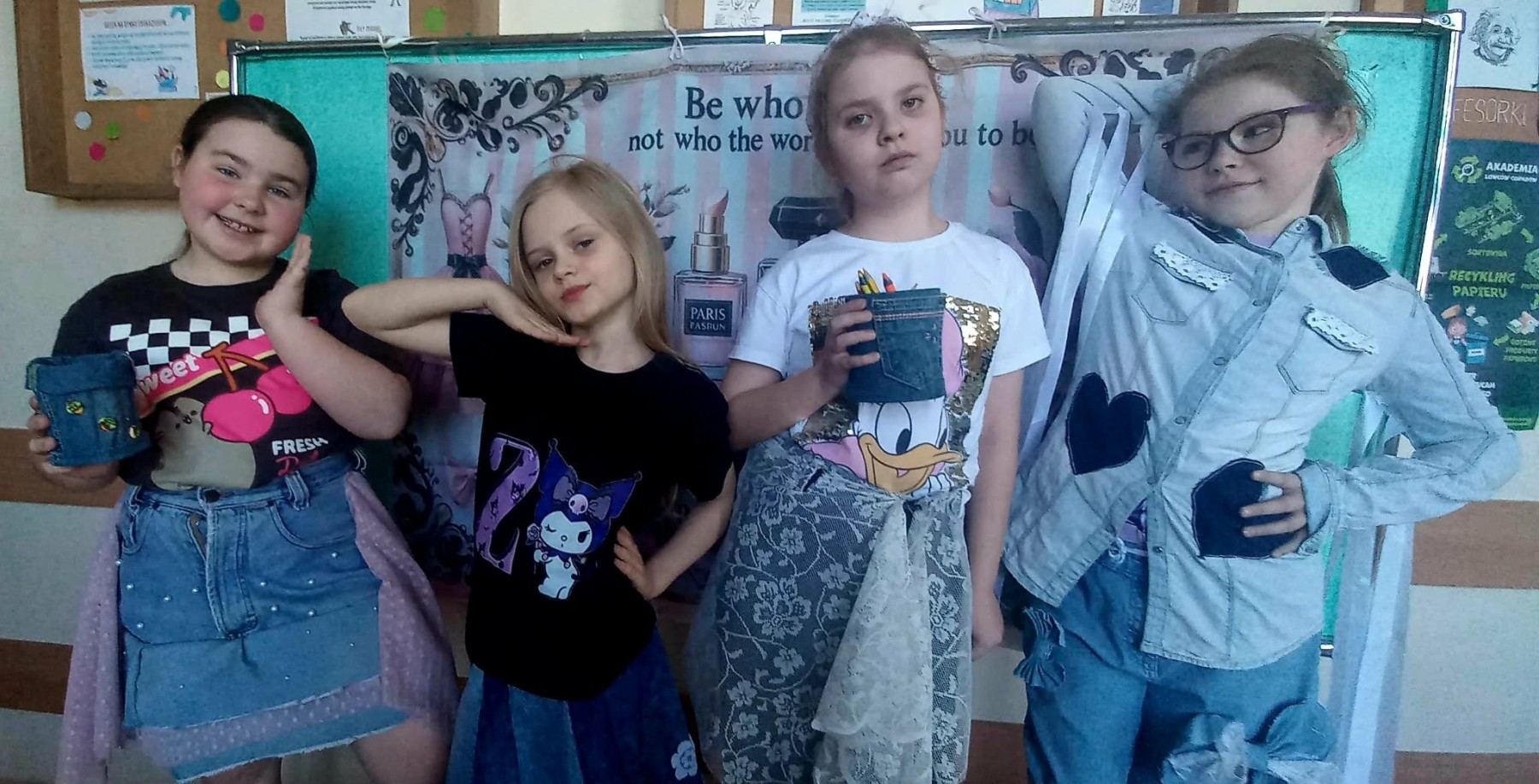 Ratując tekstylia, dzieci z klas 4-7 przystąpiły do konkursu pokegającym na uszyciu kreacji z tkanin: jeansu👖 i koronki👚
