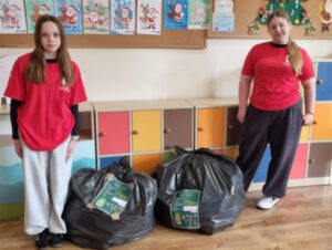 - Przez cały rok szkolny trwała zbiórka plastikowych nakrętek, które przekazywane są na cele charytatywne.