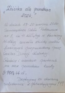 Kochani Uczniowie i Drodzy Rodzice. Dziękujemy za otwarcie swoich serc i dołożenie „cegiełki” wsparcia powodzianom. W Szkolne Koło „Caritas” zebrało od Was kwotę 3700,44zł. Dziękujemy za okazaną pomoc finansową oraz modlitwę.