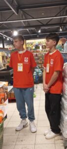 Mały gest może zmienić czyjeś życie W odpowiedzi dla potrzebujących, wolontariusze Samorządowej Szkoły Podstawowej nr1 po raz kolejny włączyli się w Świąteczną Zbiórkę Żywności zorganizowaną przez Bank Żywności. Wolontariusze i wolontariuszki z klas siódmych i ósmych: Ala Czyż, Zuzia Cichoń, Julia Niżnik, Zuzia Polanko, Oliwia Kałwa , Kacper Michalec , Adrian Maderak, Jakub Wojas oraz Gabriel Pudo i Karol Wojtasik wraz z opiekunkami SK’ Caritas Małgorzatą Woźniak i Jolantą Kochańczyk serdecznie dziękują darczyńcom