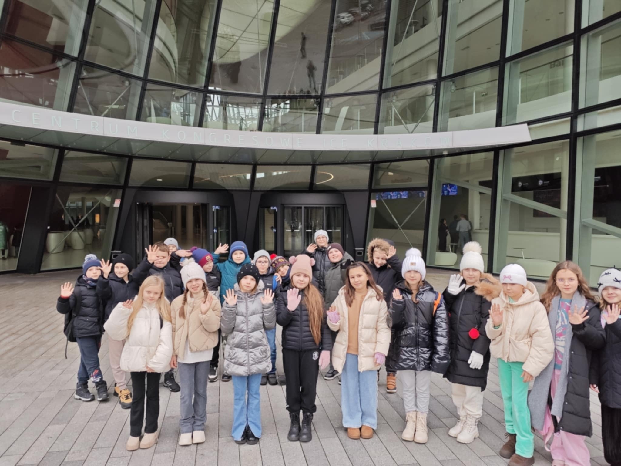 10 grudnia był dniem pełen wrażeń i niezwykłych przeżyć! Uczniowie klas 3b i 3c pod opieką swoich wychowawczyń pani Alicji Goli, pani Jolanty Oleś oraz siostry Magdaleny Murzyn wyruszyli rano w kierunku Krakowa, aby odwiedzić ICE Centrum Kongresowe – jedno z najbardziej imponujących miejsc kulturalnych w Polsce. Już sam budynek zrobił na dzieciach ogromne wrażenie swoją nowoczesną architekturą i przestronnymi wnętrzami.