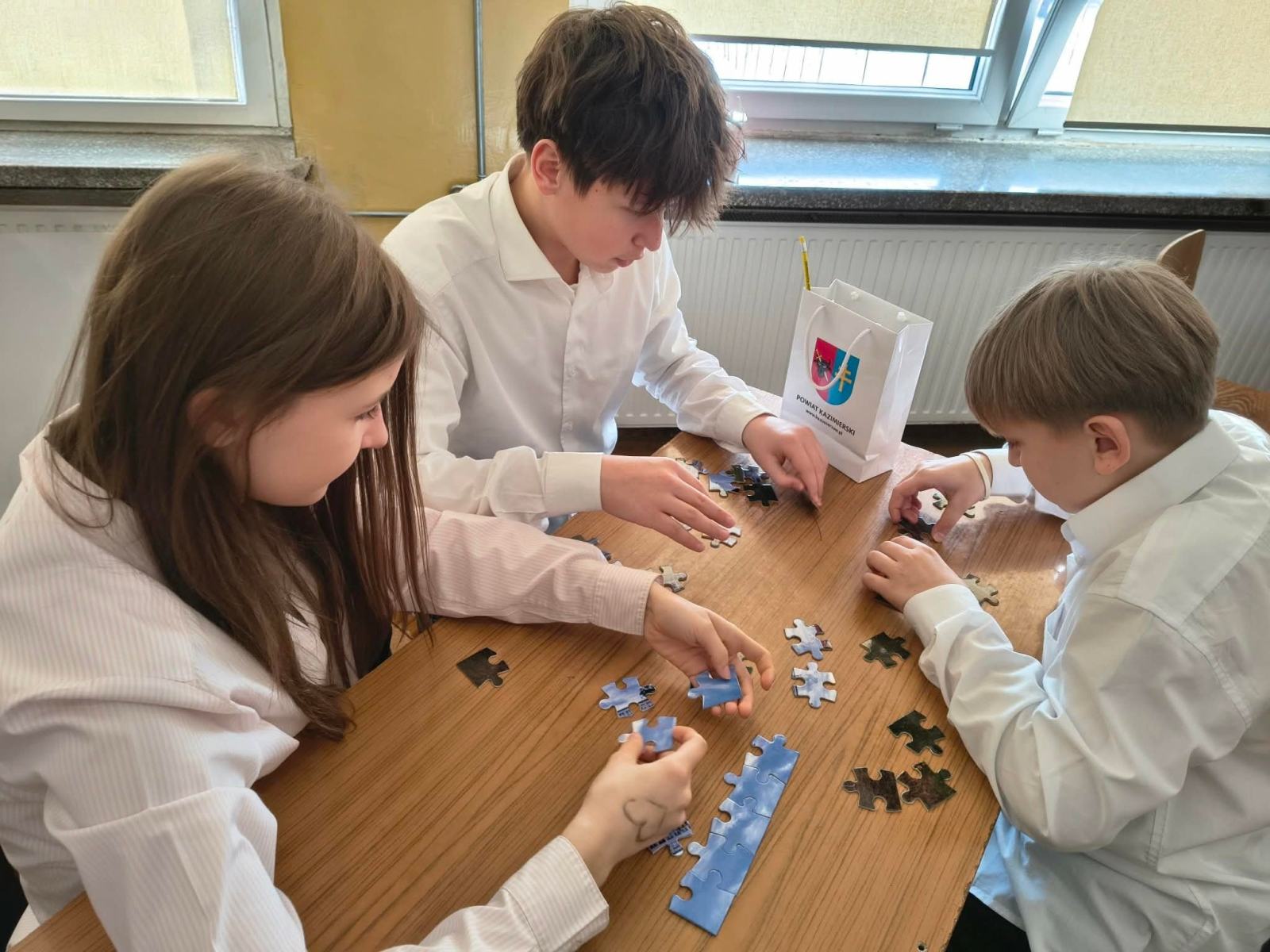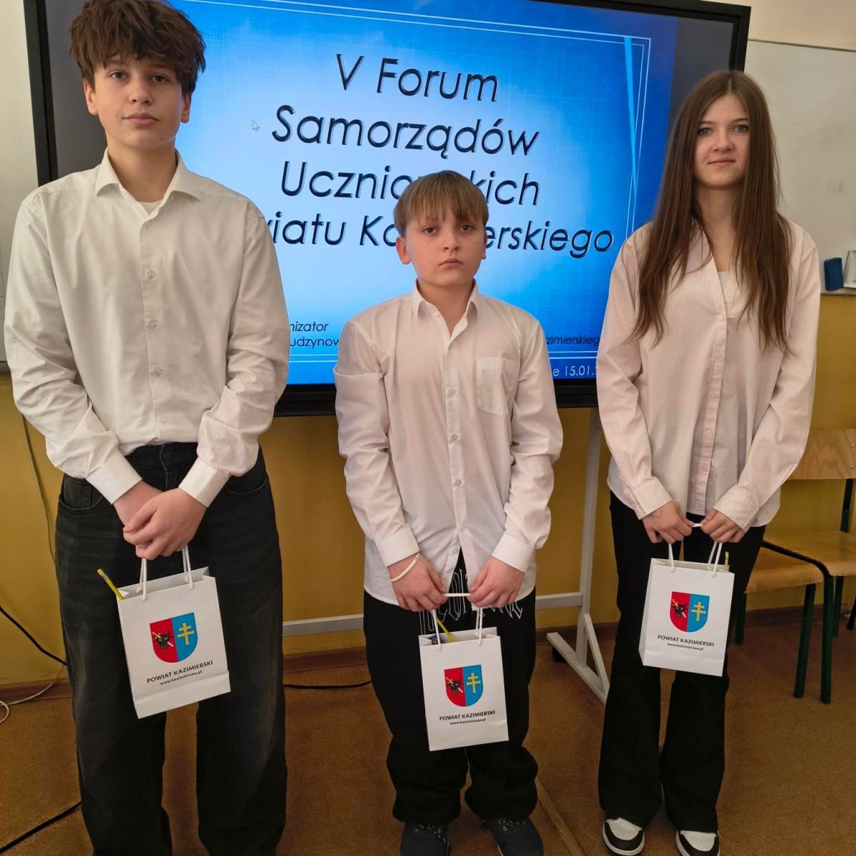 Reprezentanci Samorządu Uczniowskiego: Oliwia Kwiecień (8a), Piotr Mucha (8b), Igor Parys (5a) wraz z p. Dorotą Habas uczestniczyli w V Forum Samorządów Uczniowskich Szkół Powiatu Kazimierskiego.