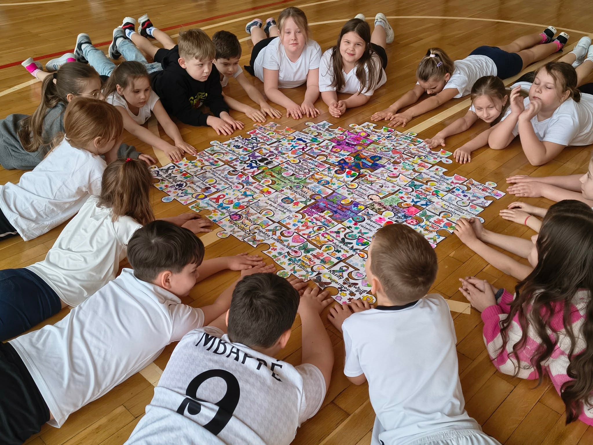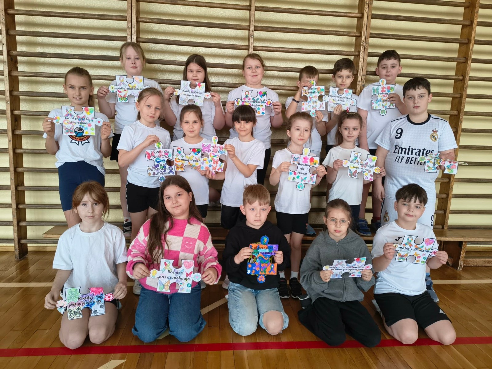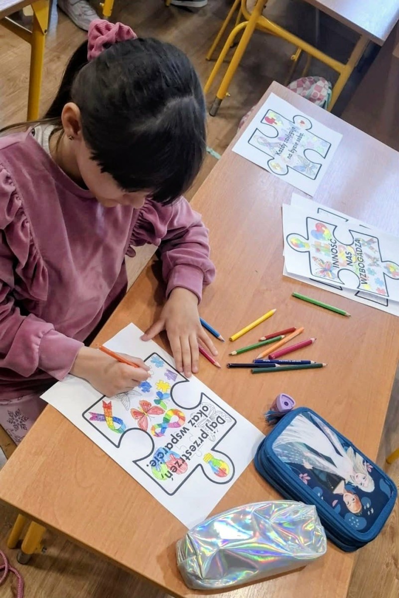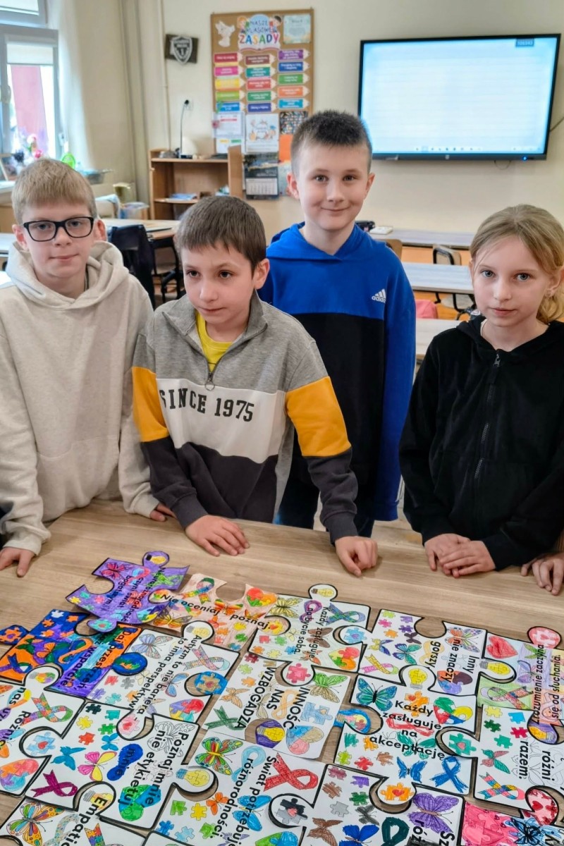 Klasy 2b i 3a wraz z wychowawcami p. Renatą Kras-Borycką oraz p. Ewą Piotrowską przygotowały „puzzle zrozumienia”, w których znalazły się następujące hasła: