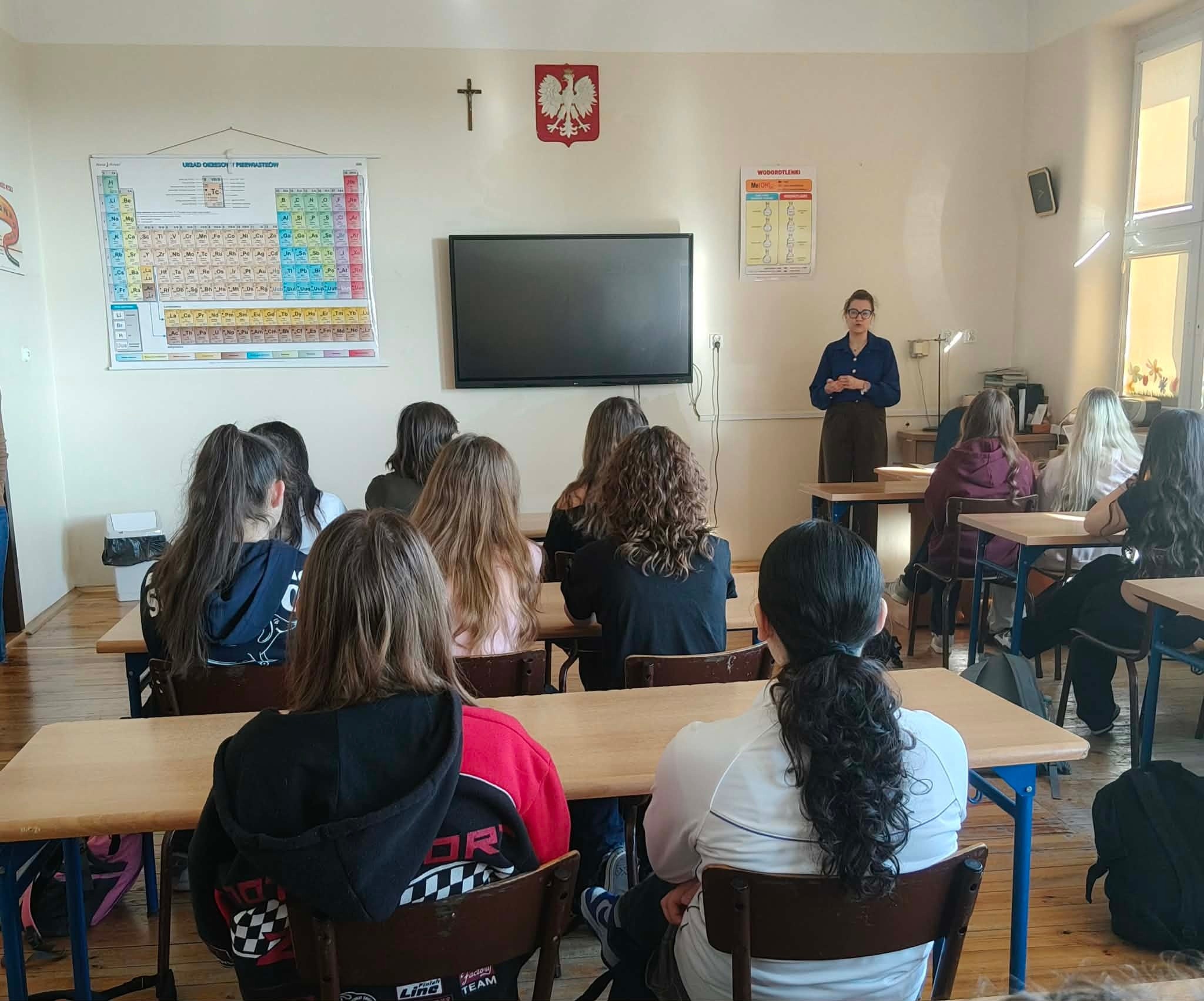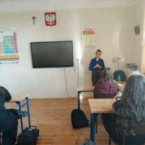 Pani notariusz opowiedziała również o prowadzeniu działalności notarialnej, jej funkcjach oraz wyzwaniach, jakie wiążą się z tym zawodem. Podkreśliła, że zapewne każdy z nas w przyszłości skorzysta z usług notariusza n.p. podczas kupna czy sprzedaży mieszkania.