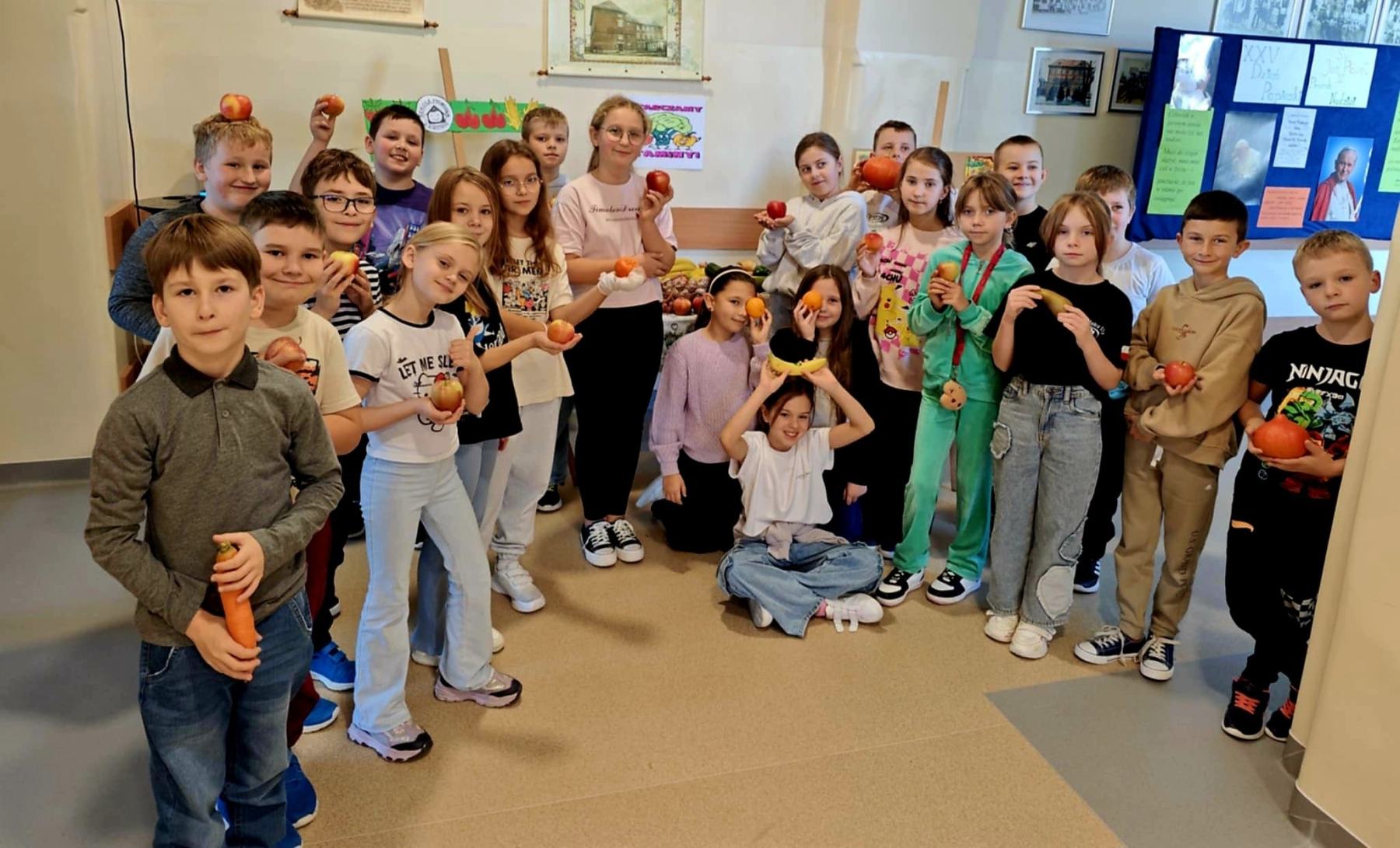 Na szkolnych korytarzach stały stoły, na których królowały soczyste jabłka, chrupiące marchewki, słodkie winogrona i świeże warzywne przekąski. Każdy mógł spróbować zdrowych smakołyków i przekonać się, że zdrowe jedzenie naprawdę może być pyszne! Naszym celem jest pokazanie, że codzienny posiłek w szkole może być nie tylko pożywny, ale też kolorowy i pełen witamin.