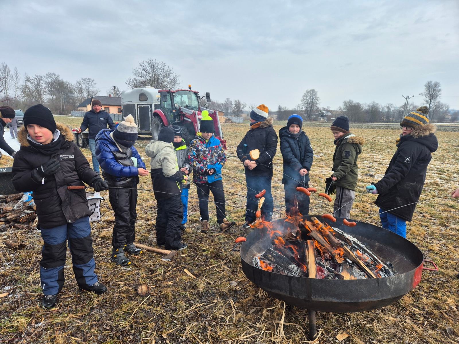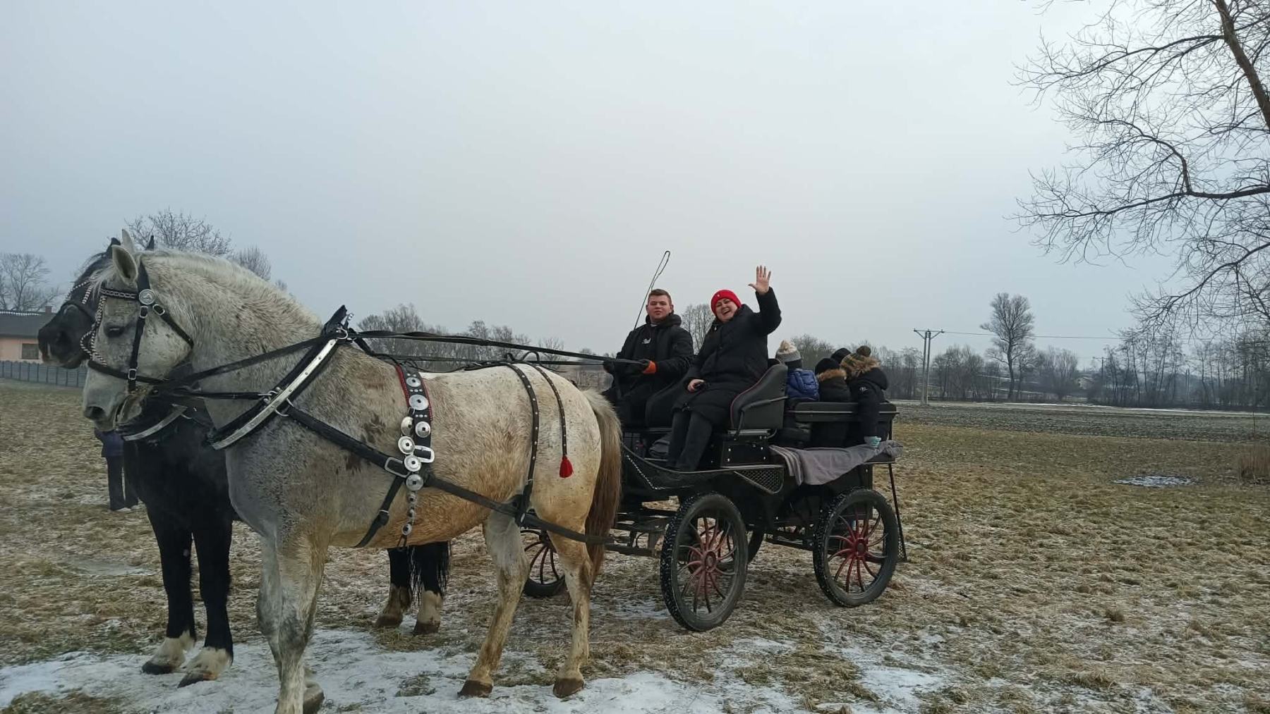 Była przejażdżka bryczką, zimowe zabawy, mnóstwo śmiechu i świetnej energii. Dzieci z entuzjazmem cieszyły się wspólnym czasem na świeżym powietrzu. Po kuligu na wszystkich czekało ognisko z ciepłą herbatą i kiełbaskami – idealny moment na odpoczynek i rozmowy.